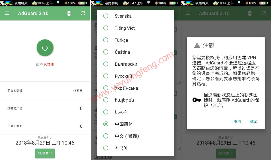 AdGuard是一款强悍的广告拦截工具,作为世界上最高级的广告拦截程序,常见的广告拦截都是通过拦截工具和浏览器扩展来实现的,而adguard工作于网络层和不受限制的扩展,直接从源头分批过滤各种广告请求,因此使用AdGuard时会提示代理至AdGuard的专用服务器,默认允许即可。跟市面上那些渣渣拦截工具不同的是,一般的工具都是后知后觉广告出来了才做出拦截指令并执行,而AdGuard直接通过服务器端过滤掉大部分的广告再传输到手机端,还能移除所有烦人的广告,阻止危险网站的加载,也不会允许任何人在网上跟踪你的活动。当处理一个网页,Adguard做几件事情:删除广告和在线跟踪代码直接从页面,检查网页对我们的网络钓鱼和恶意网站,检查从未知来源下载的应用程序。