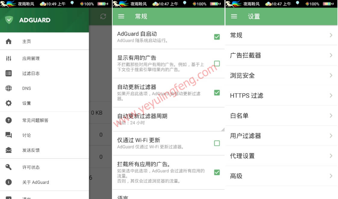 目前Adguard是一款付费工具,支持移动端、PC端以及浏览器拓展,这次老夜推荐的是手机端的VIP石皮解版,喜欢的小伙伴们赶紧下载体验一番吧!