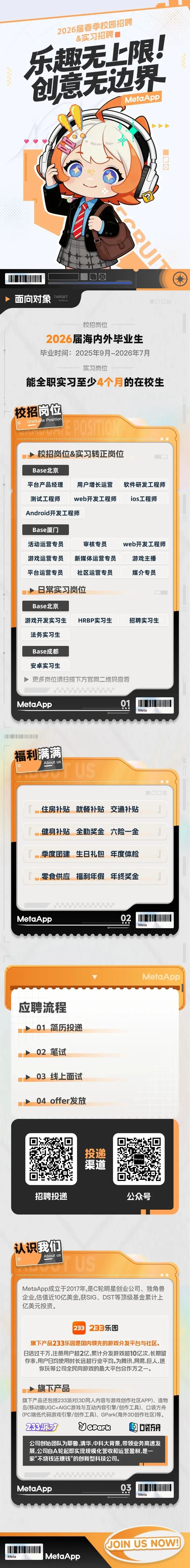 校招资讯 | MetaApp 2026届春招校园招聘&实习招聘启动!