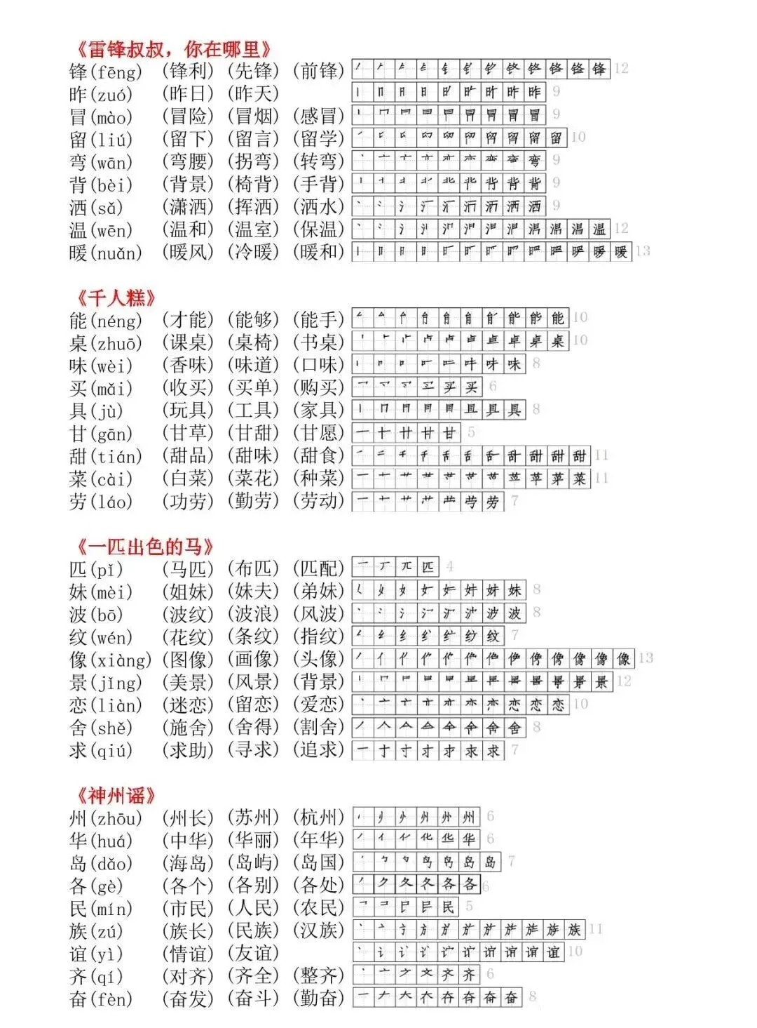 二年级下册生字拼音组词笔顺 | 可打印