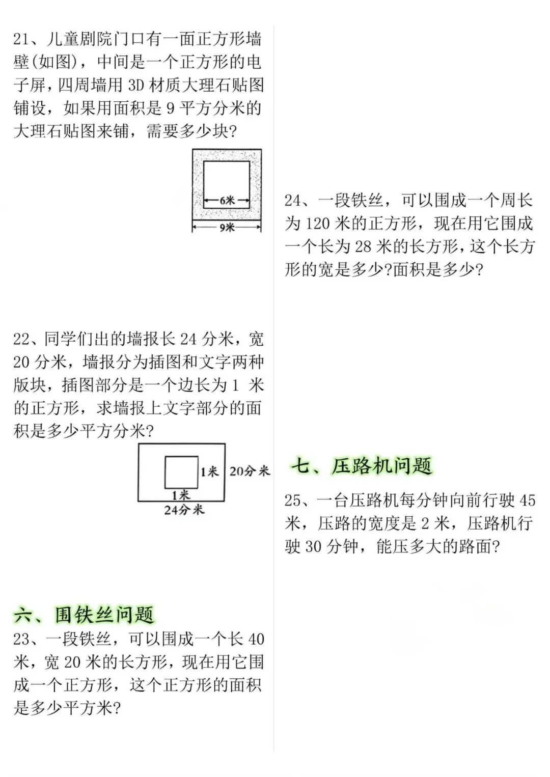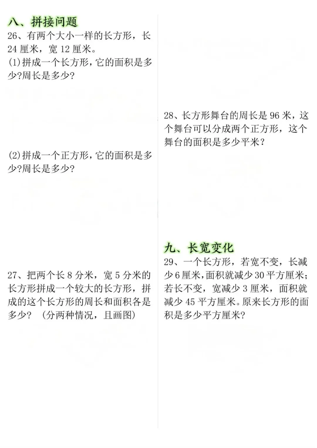 26春三年级下册数学面积周长应用题,可下载可打印
