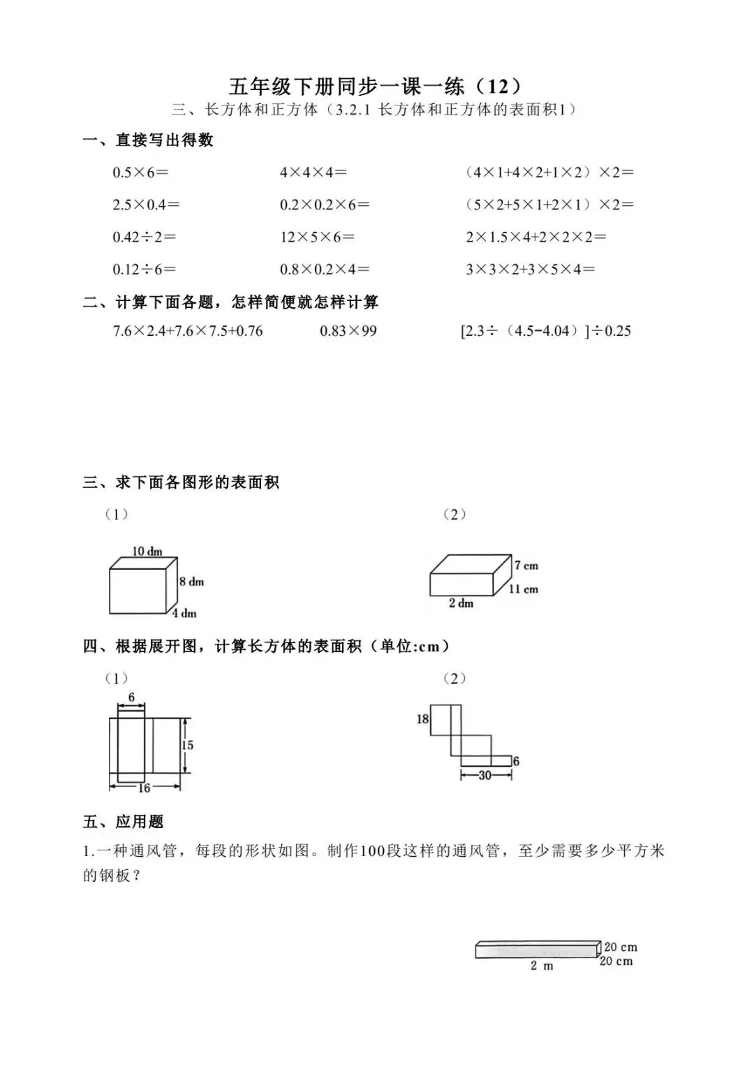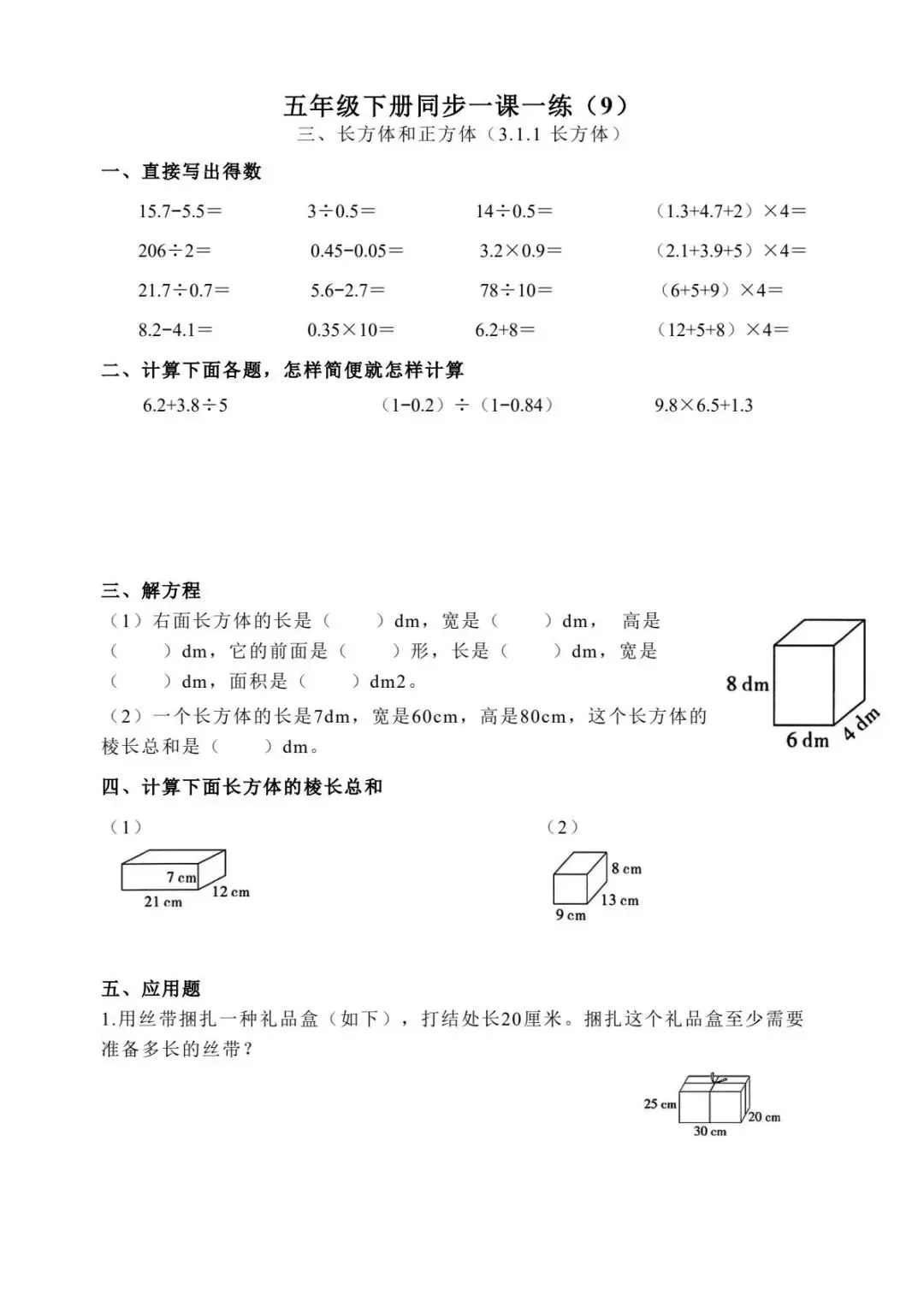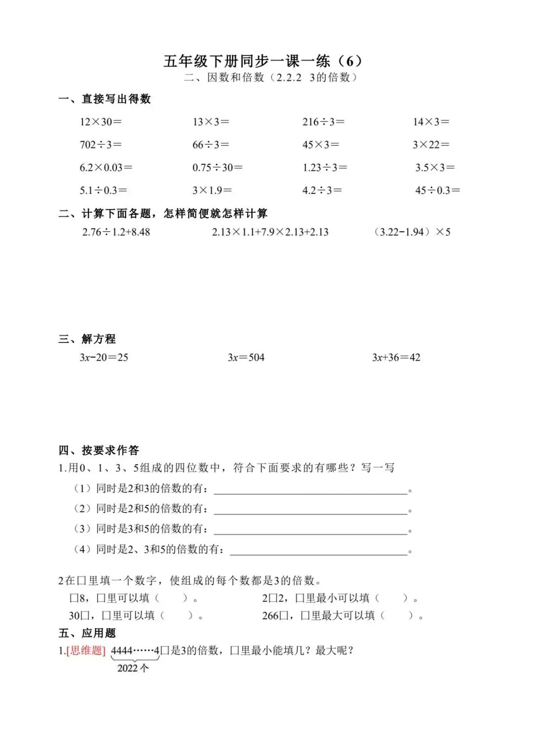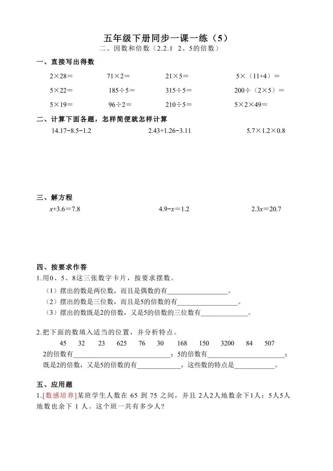 五年级下册数学跟课每日计算完整版55页-电子版可打印