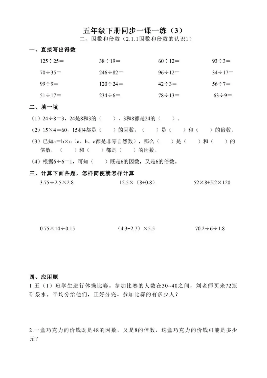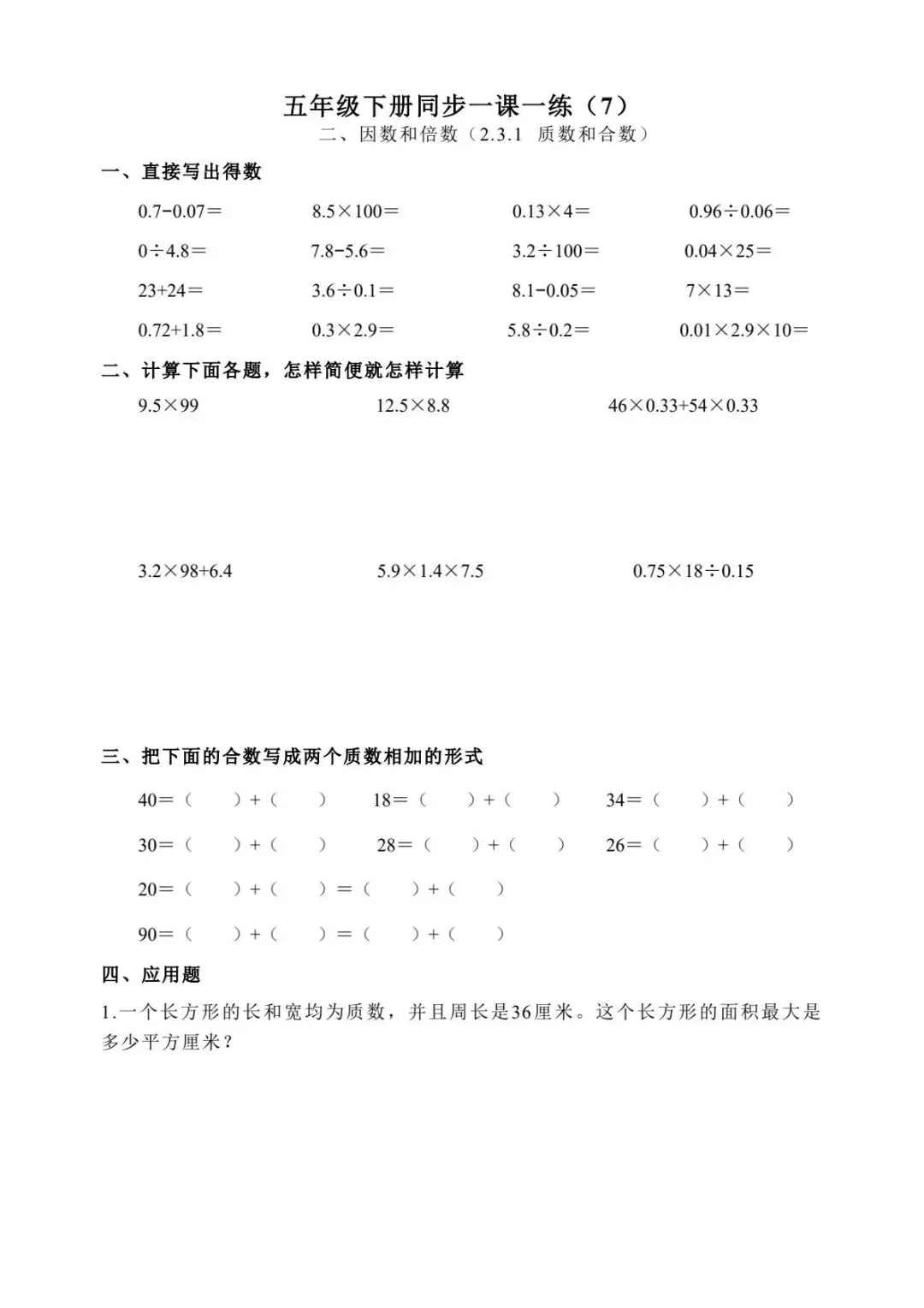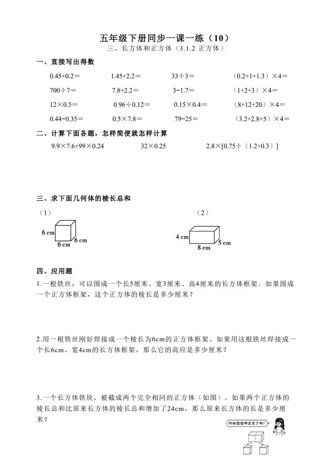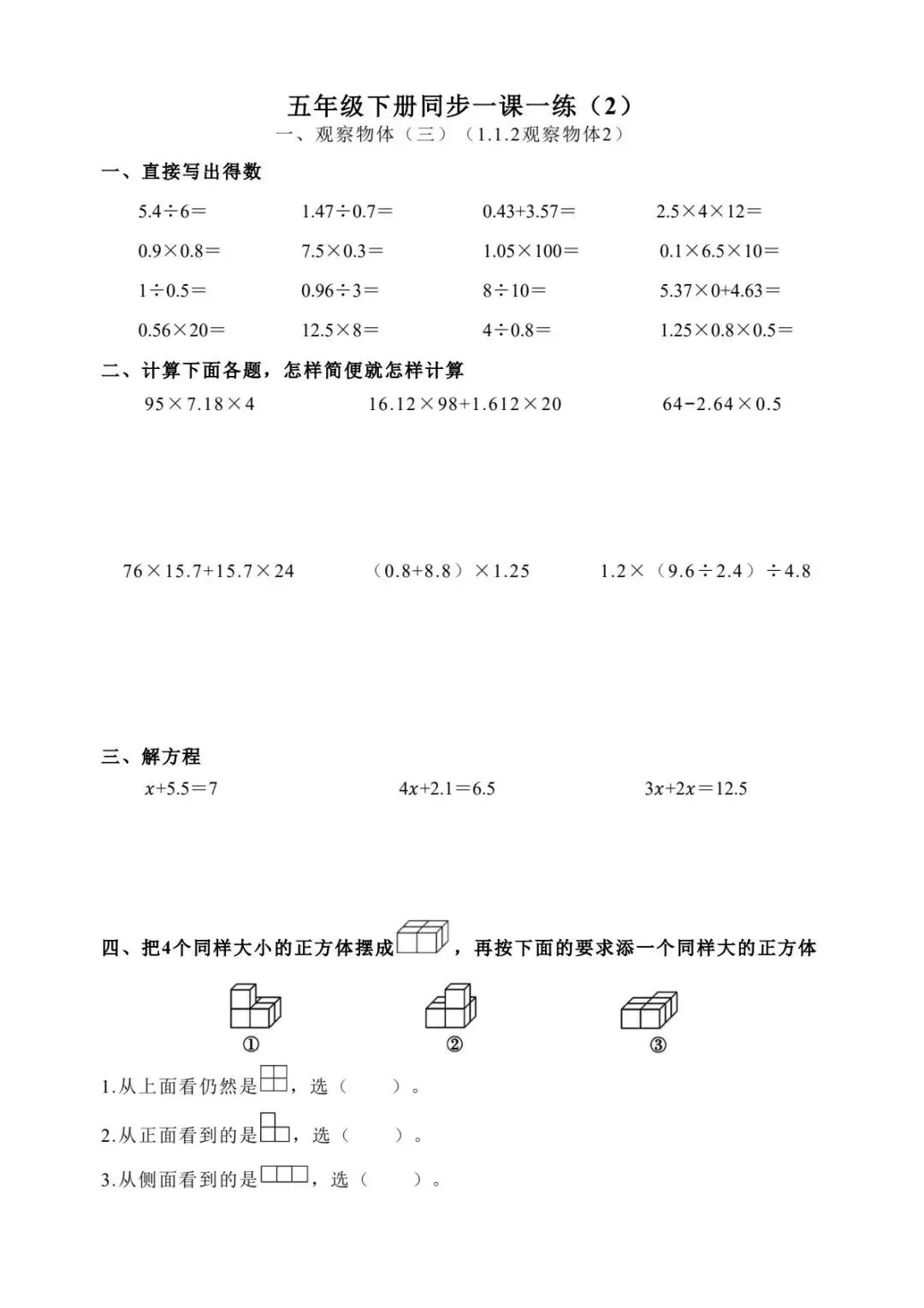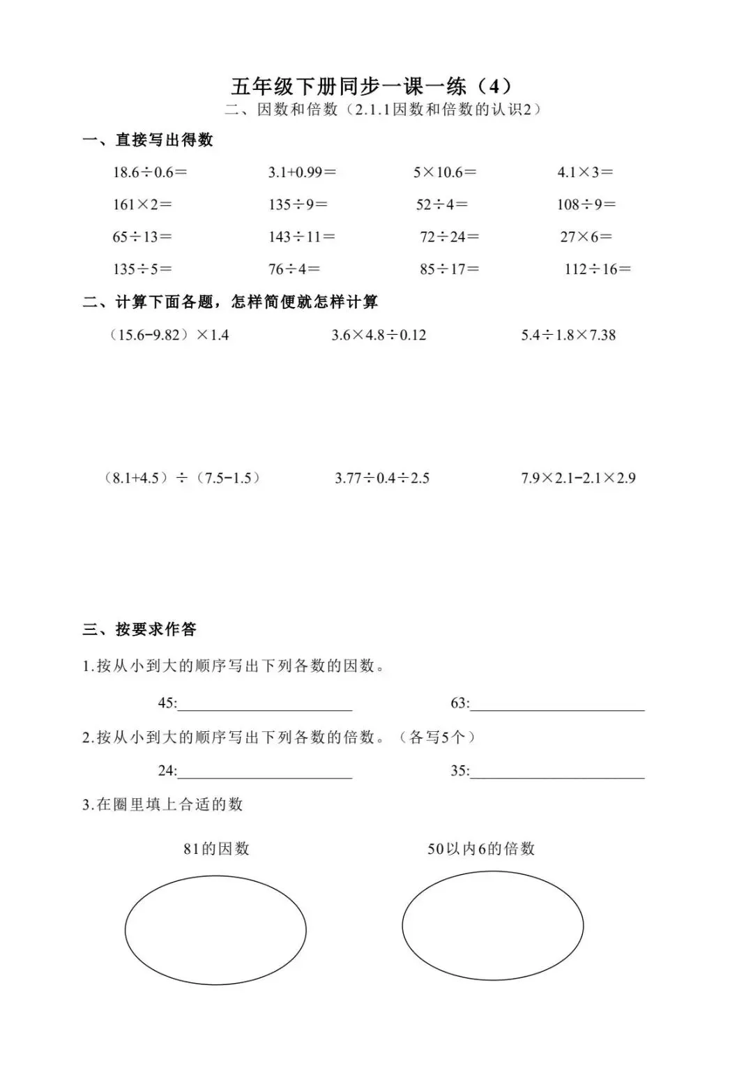 五年级下册数学跟课每日计算完整版55页-电子版可打印