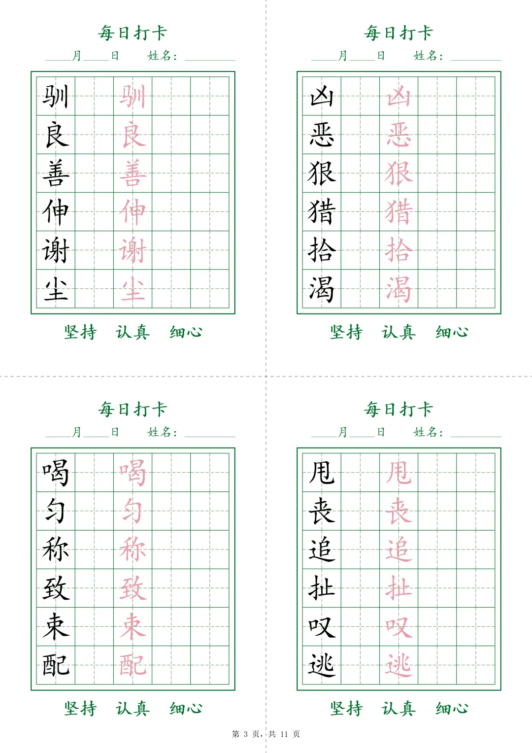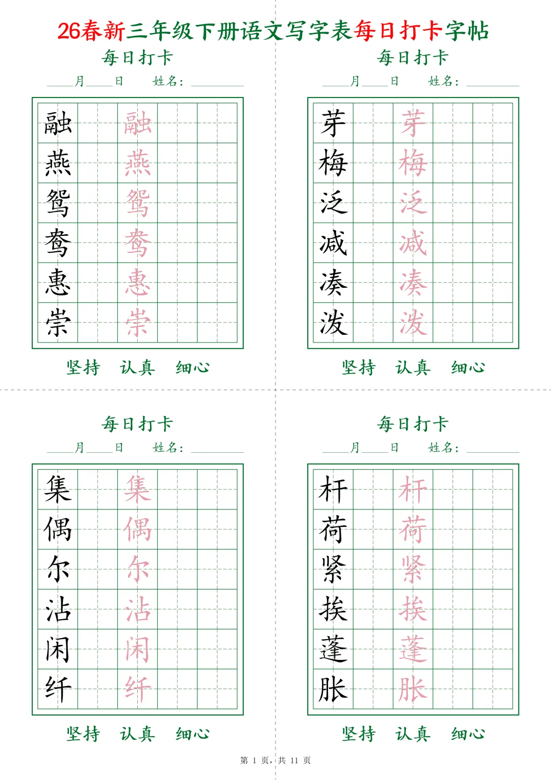 今天为大家分享:三年级下册是汉字书写从 “会写” 到 “写好” 的关键过渡期,每日打卡字帖紧扣教材核心生字,以 “描红临摹 + 每日打卡” 的设计,打造了科学高效的汉字书写训练方案。