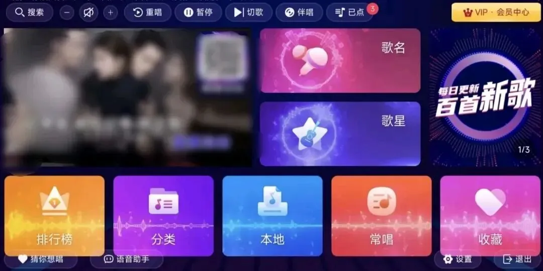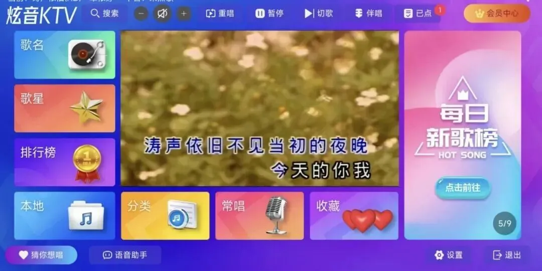 支持歌手点歌、歌名点歌、语种点歌、综艺点歌抖音神曲等,每首歌曲都配备了原唱/伴唱切换功能及精美的MV