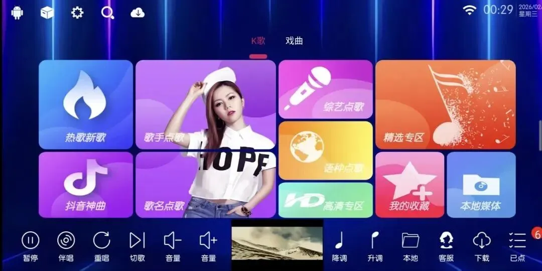 软件界面简洁明了,功能设计清晰易懂,点歌方式丰富多样,可通过歌名、歌星、排行榜、分类等多种途径轻松找到心仪歌曲。不过,目前该版本暂不支持通过手机扫码点歌