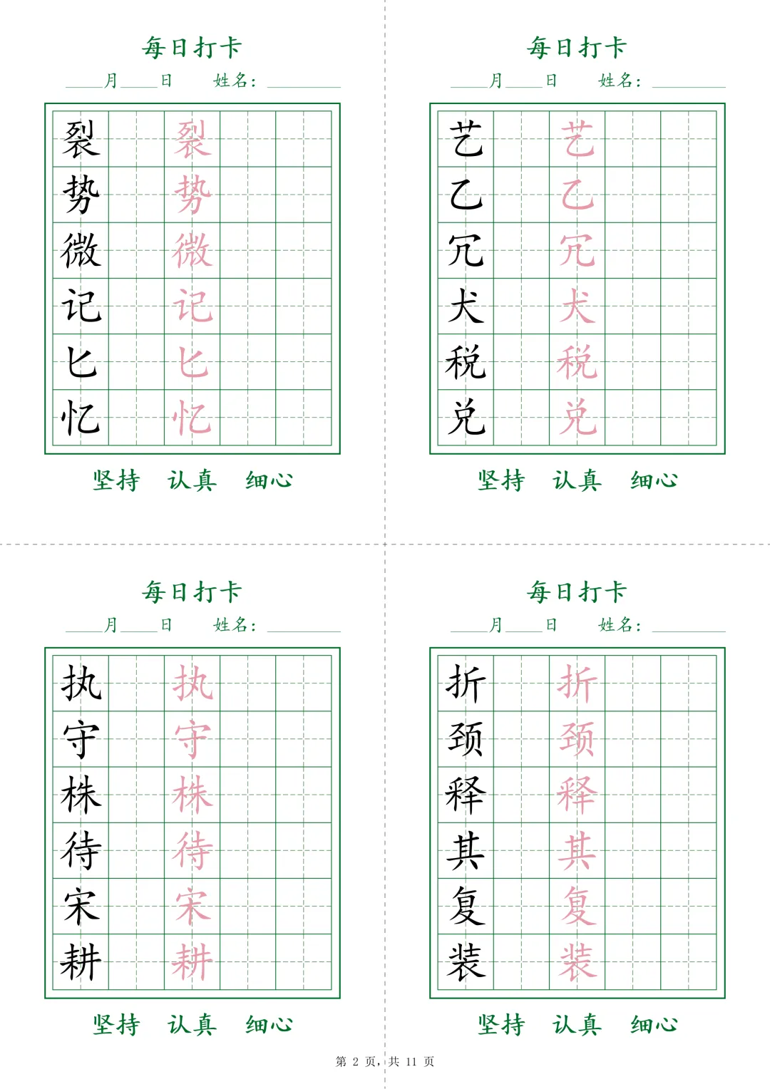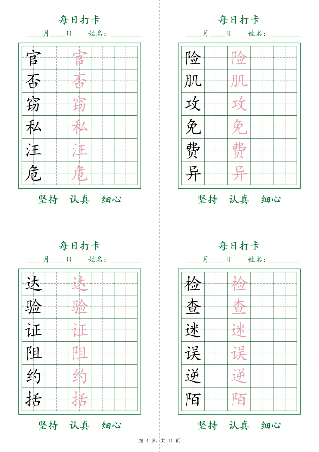 今天为大家分享:三年级下册是汉字书写从 “会写” 到 “写好” 的关键过渡期,每日打卡字帖紧扣教材核心生字,以 “描红临摹 + 每日打卡” 的设计,打造了科学高效的汉字书写训练方案。