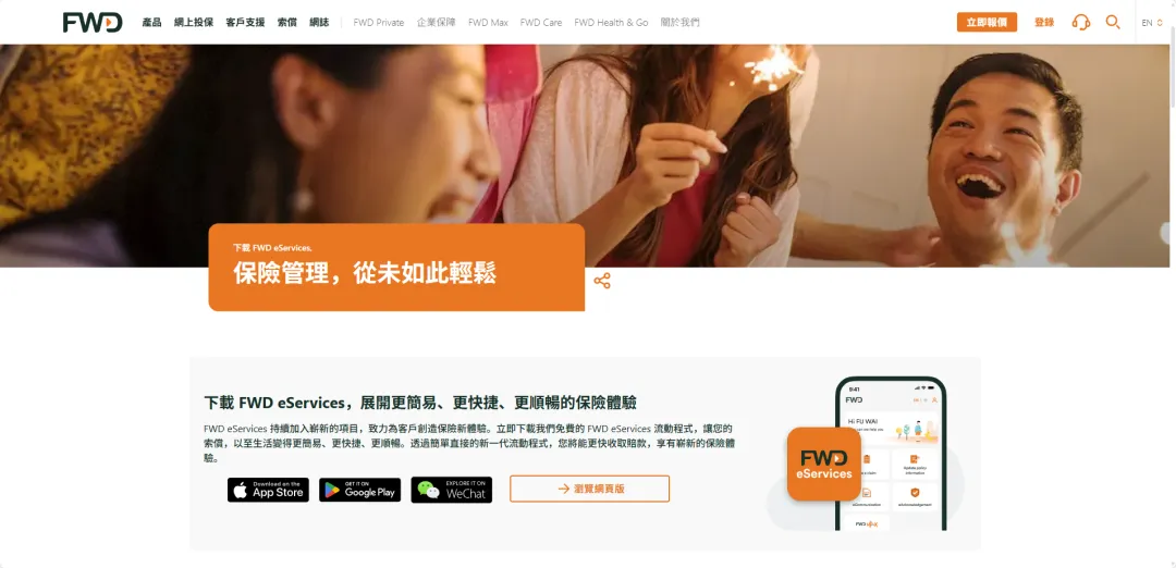 富卫可通过官方网站、FWD eServices HK APP、FWD 富卫香港微信服务号,完成保单查询、信息管理、权益服务等全流程线上操作,便捷高效。