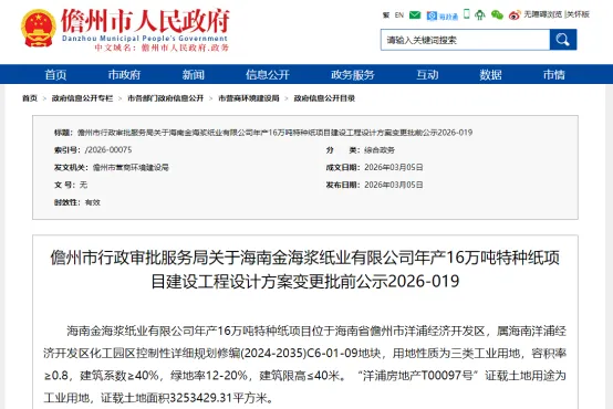 项目 | 设计方案变更!APP海南金海浆纸业拟建年产16万吨特种纸项目