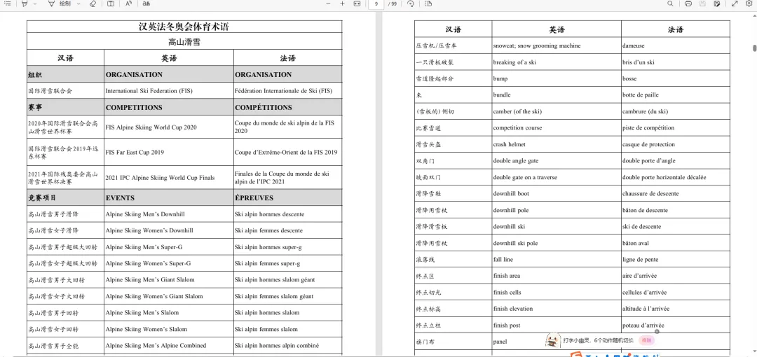 但说来惭愧,我虽做滑雪翻译十年有余,但并没有对原文和译文进行过规范整理。相信多数译员都会有这样的感触:很多专业化的词汇频繁使用还好,频率不高的话就很容易忘记。