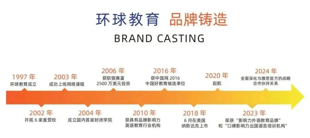 环球教育创立于1997年, 旗下拥有150余家教学中心,遍布中国100多个城市。经过20多年的发展壮大,环球教育目前已构建了包含语言培训、出国咨询、国际学校择校、国际课程、游学考察、在线课程等在内的教育生态圈,致力于为学生提供一站式国际留学服务。