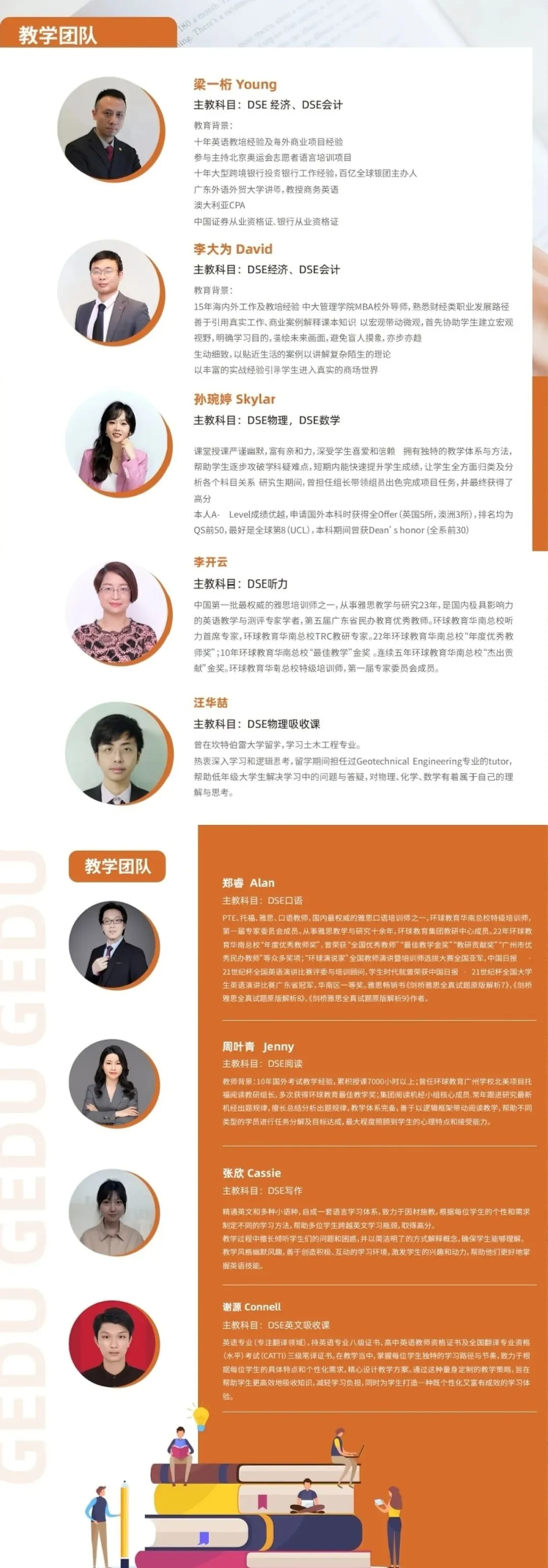 环球教育DSE教学团队由20+年教学经验的雅思功勋名师领衔,集结业内各科目的优秀师资,形成了一个完备的国际体系教学团队。