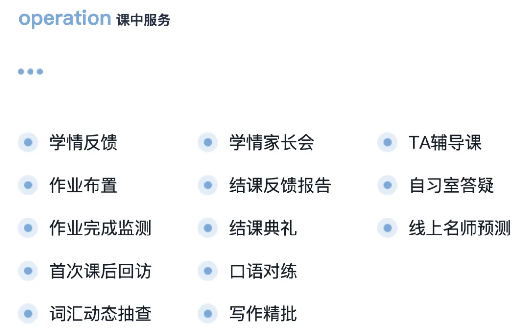 专业对口老师辅助学生课前课后作业完成、消除课堂遗留问题,保障学生学习效果。