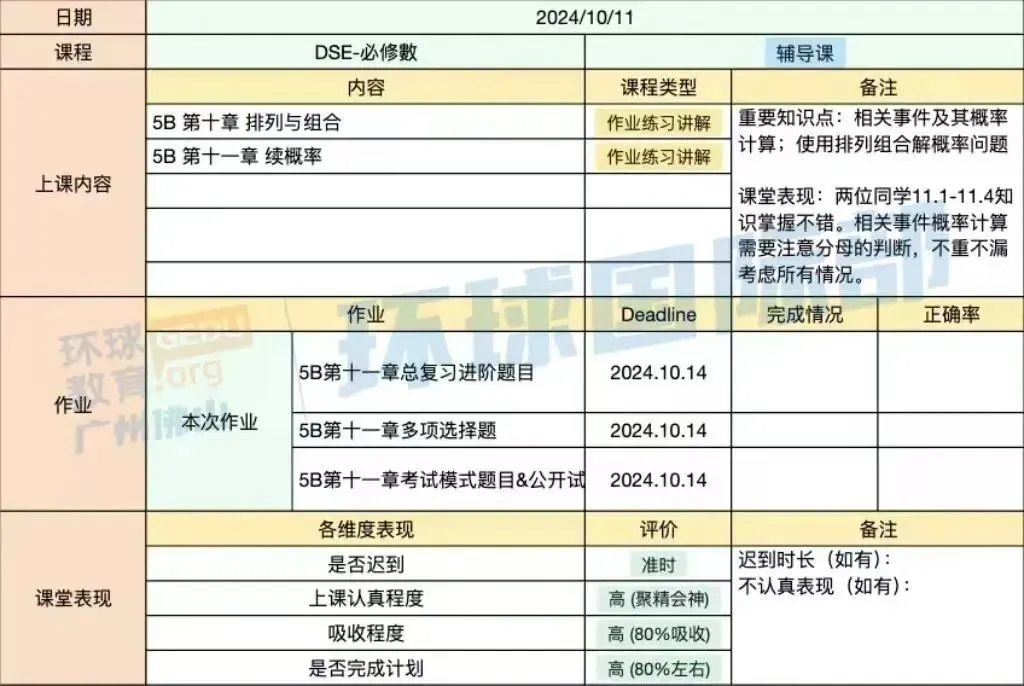 每日跟进计划与课堂实时反馈