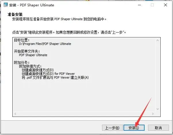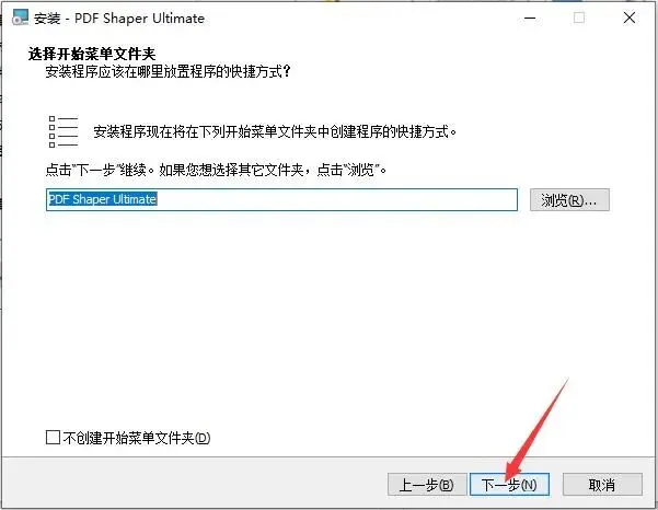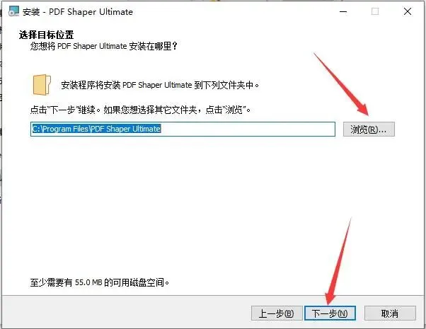 4.点击浏览更换软件安装目录,默认目录:C:\Program Files\PDF Shaper Ultimate;如图