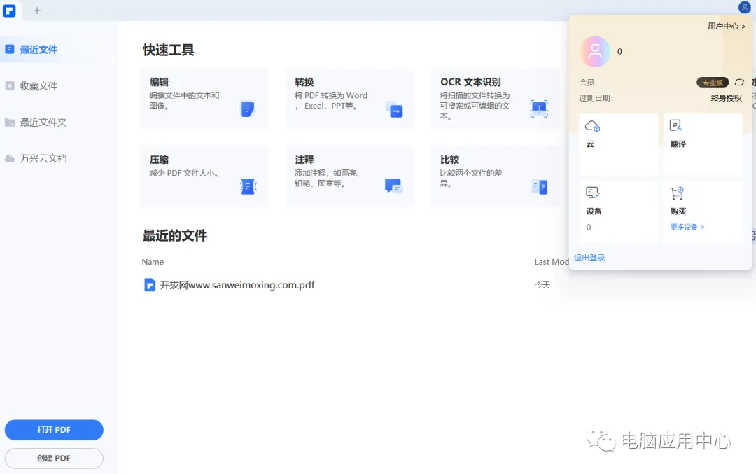 本公众号【软件棒棒哒】发布的是PDFelement软件的解锁专业VIP版