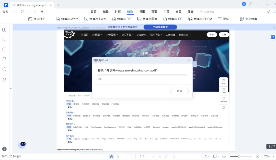 格式转换:PDFelement轻松转化PDF文档,转换的文件还原程度高,能够最大程度的保留原有布局不改变。可以把PDF文档或者PDF扫描件转换成Word、Excel、PPT、EPUB、HTML、Text、RTF等多种常用格式。