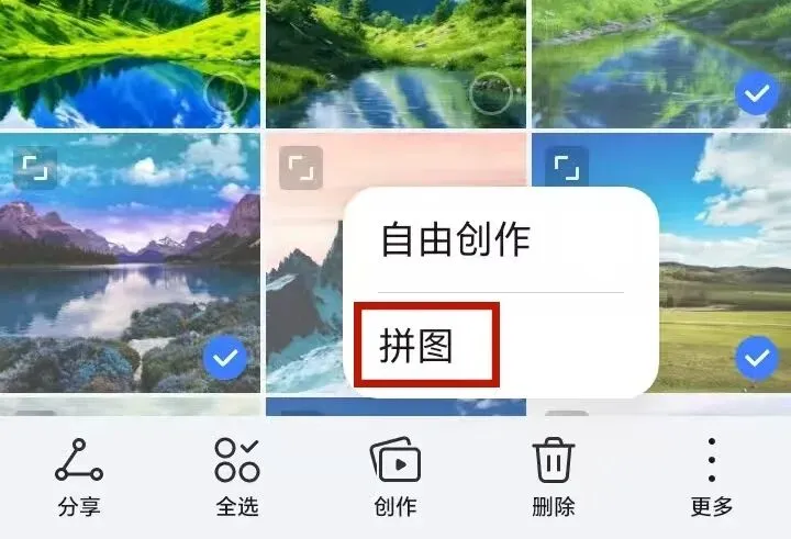 点底部 图片图标,从相册选要拼的照片,按顺序排好