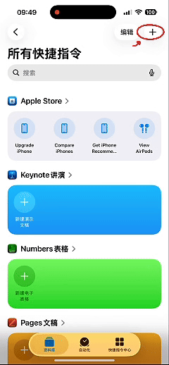 打开手机自带的 快捷指令(找不到就去App Store搜“快捷指令”,免费恢复) -