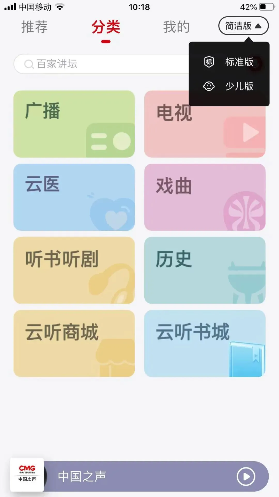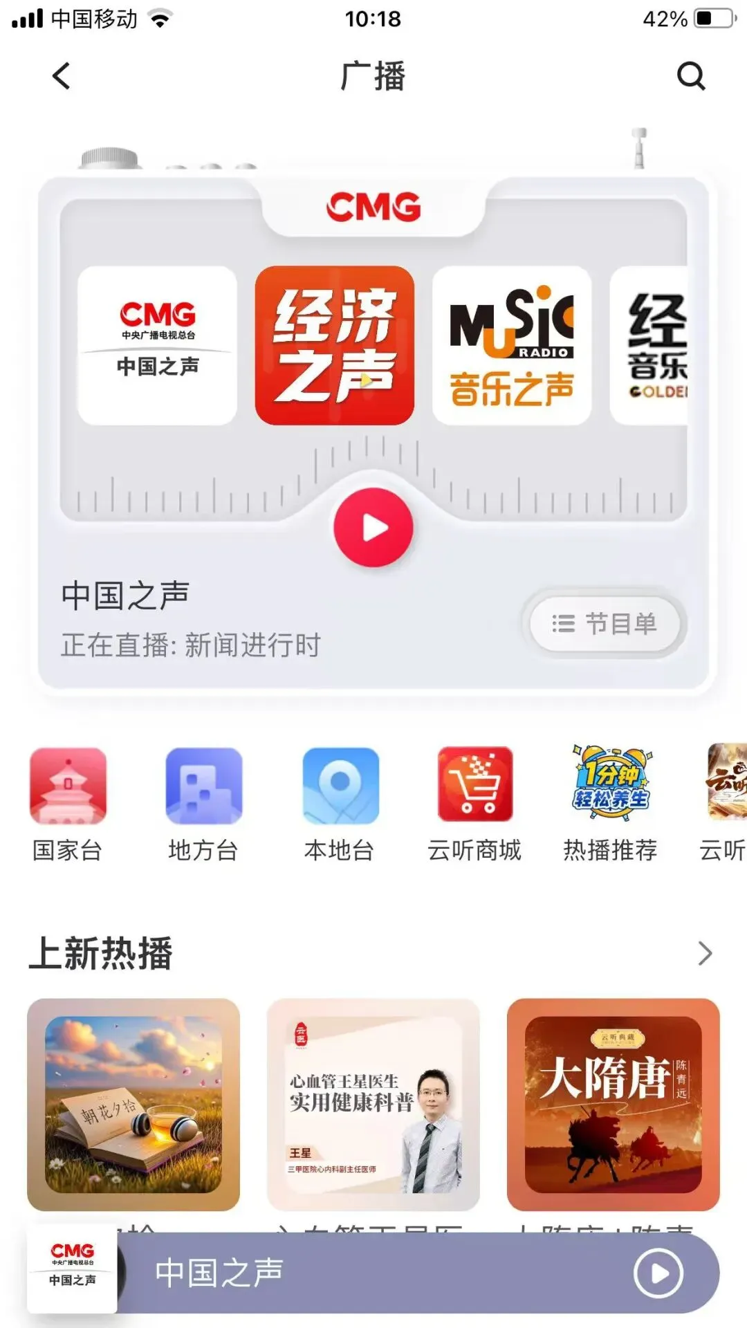 “云听”是中央广播电视总台推出的音频应用程序,属于官方出品。其优势在于音频内容版权正规、资源库庞大,且大量基础内容免费开放。