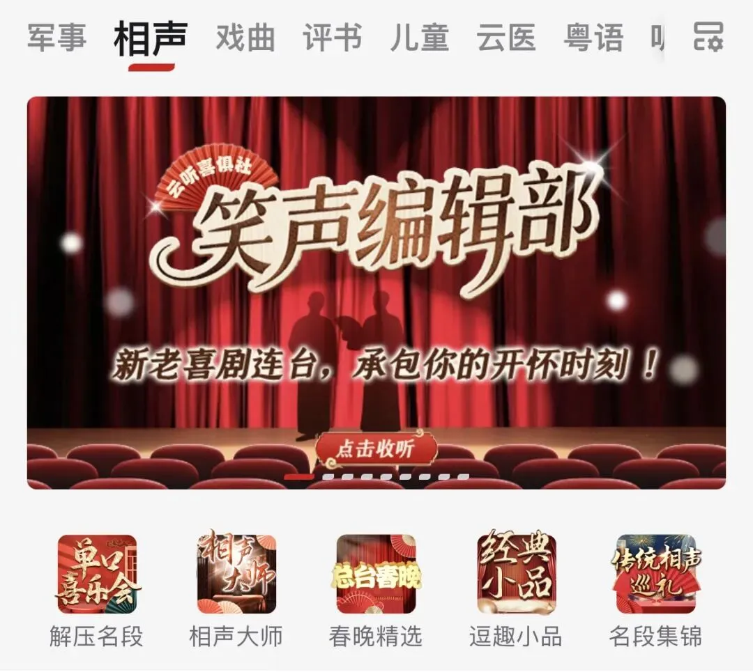 》》》特定场景内容:提供中小学语文课文的标准朗读音频(下图)、非遗文化(如京剧、评弹)经典唱段、主流相声小品等垂直分类内容,适合不同年龄段和兴趣的用户。