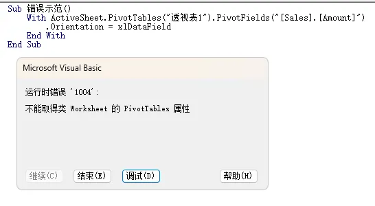 假设我们想把一个度量值(比如销售额)拖到数值区求和,你可能天真的以为直接设置 Orientation = xlDataField 就完事了。