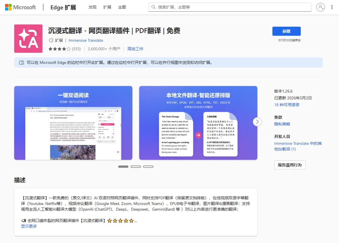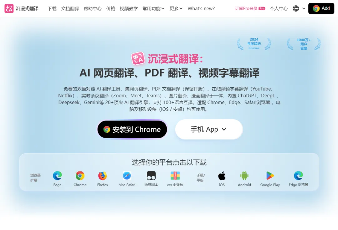 官网:https://immersivetranslate.com/zh-Hans/download/