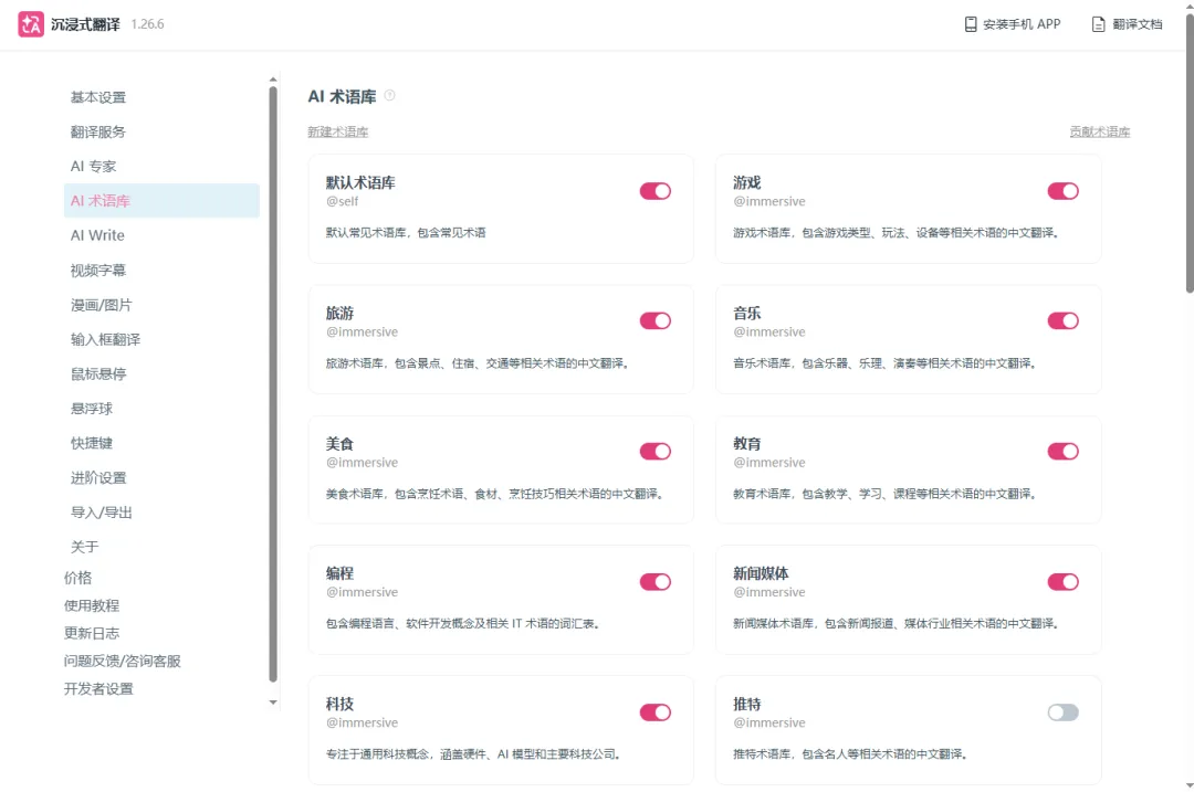 还有内置了AI术语库,当在网页中检测到有专业术语时,优先调用术语库中的译文。还可以通过自建术语库,把自己常用的专业术语添加进去。