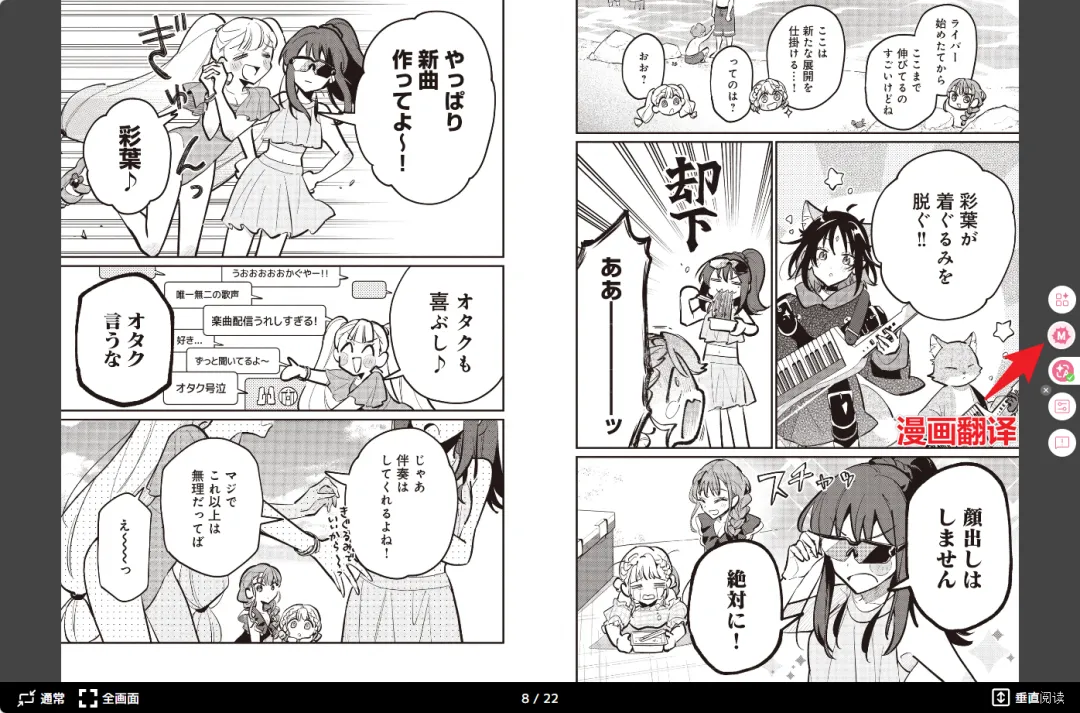 而且还可以翻译漫画,在漫画网站中,点击侧边漫画翻译按钮,可以自动识别对话框中的文本并翻译。