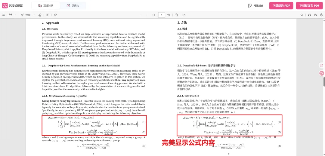我们在使用传统的 PDF 翻译工具时,经常会遇到公式乱码、排版错位等情况,影响原文阅读。