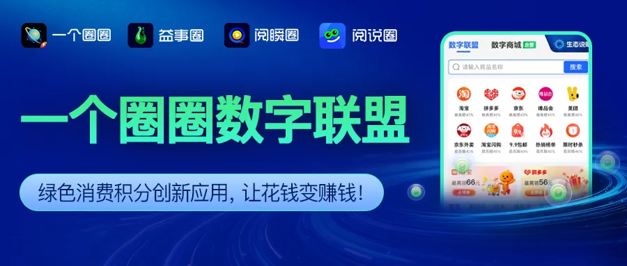 绿色消费积分,让每一笔日常消费都成为价值投资。立即行动,加入绿色消费浪潮:在一个圈圈数字联盟,消费即积累资产,分享即创造收益,你的每一笔绿色消费都是一次价值财富的积累!
