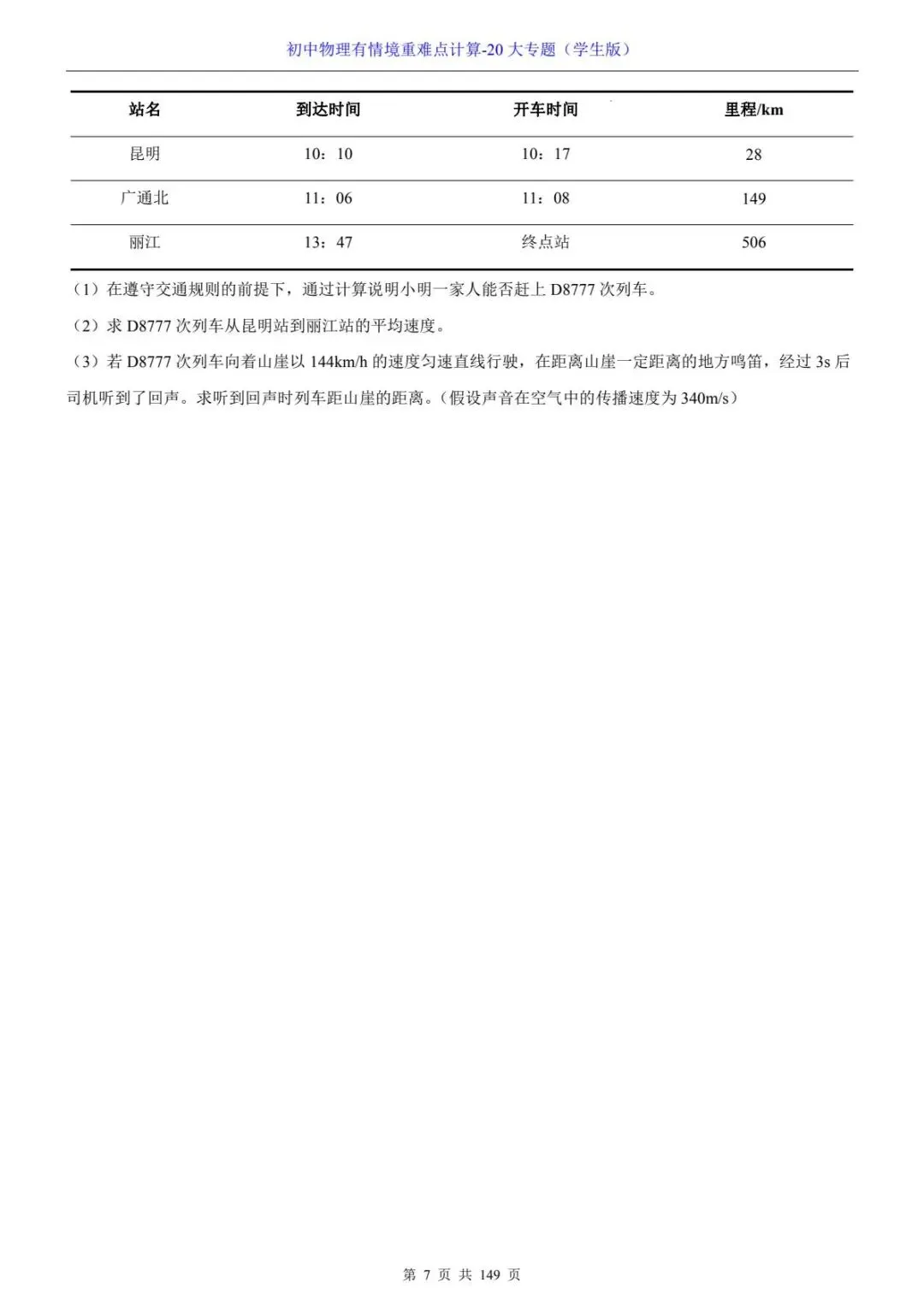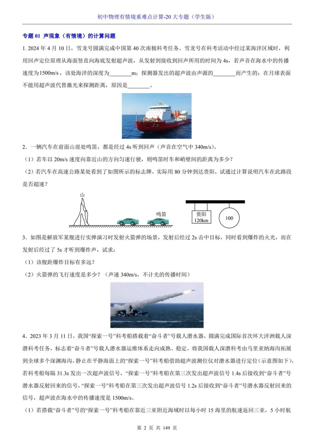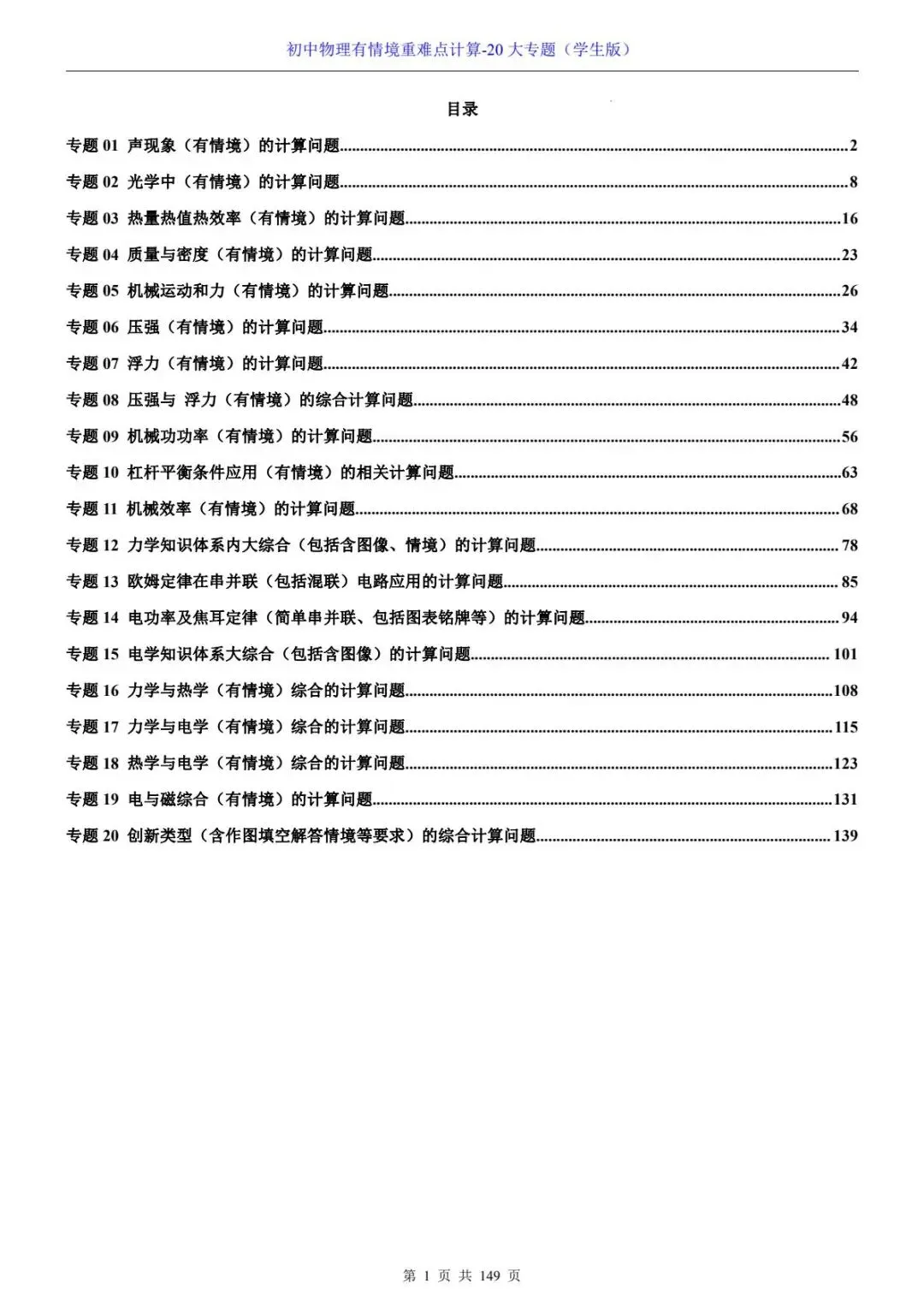 初中物理有情境重难点计算-20大专题电子版可打印~