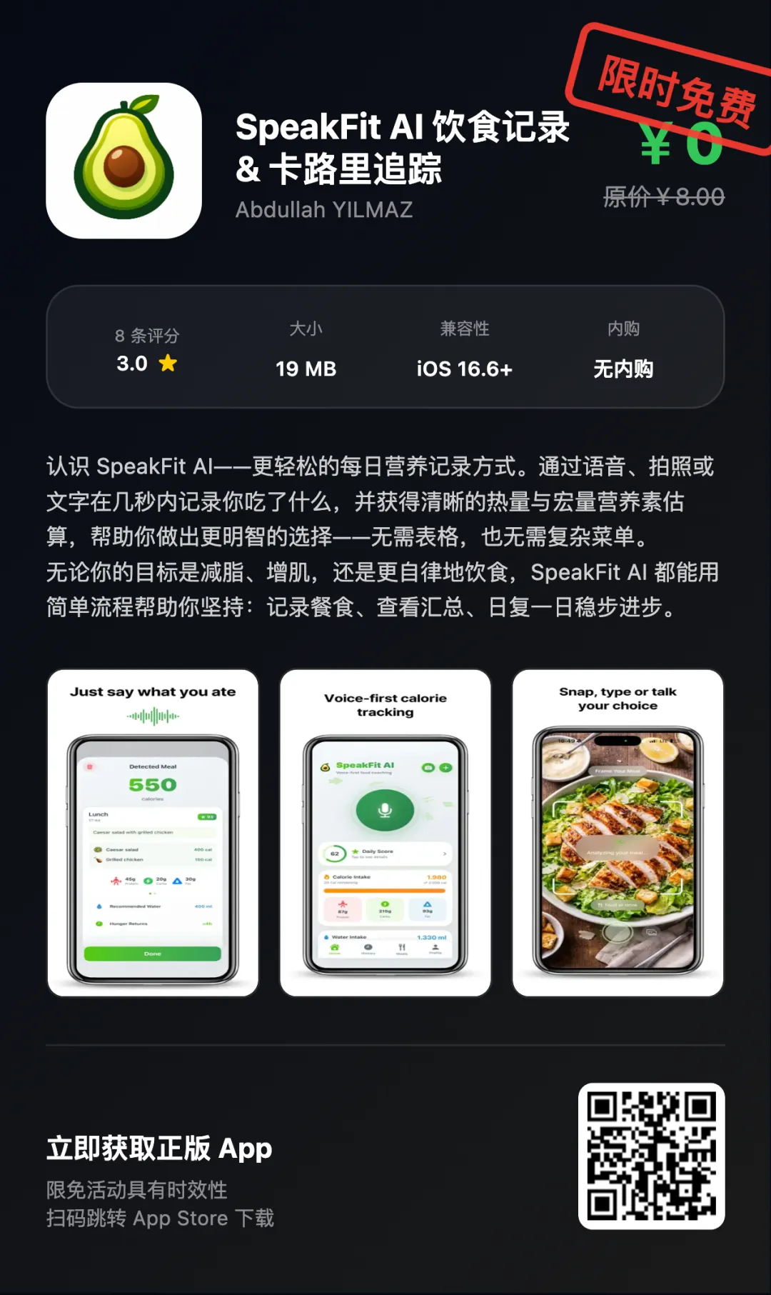 “App Store限免优惠或推荐精品应用,一旦下载,账号再次下载即永久免费!如果收费则为限免结束!!下载前请仔细核对应用或游戏价格,实际价格以App Store页面为准”