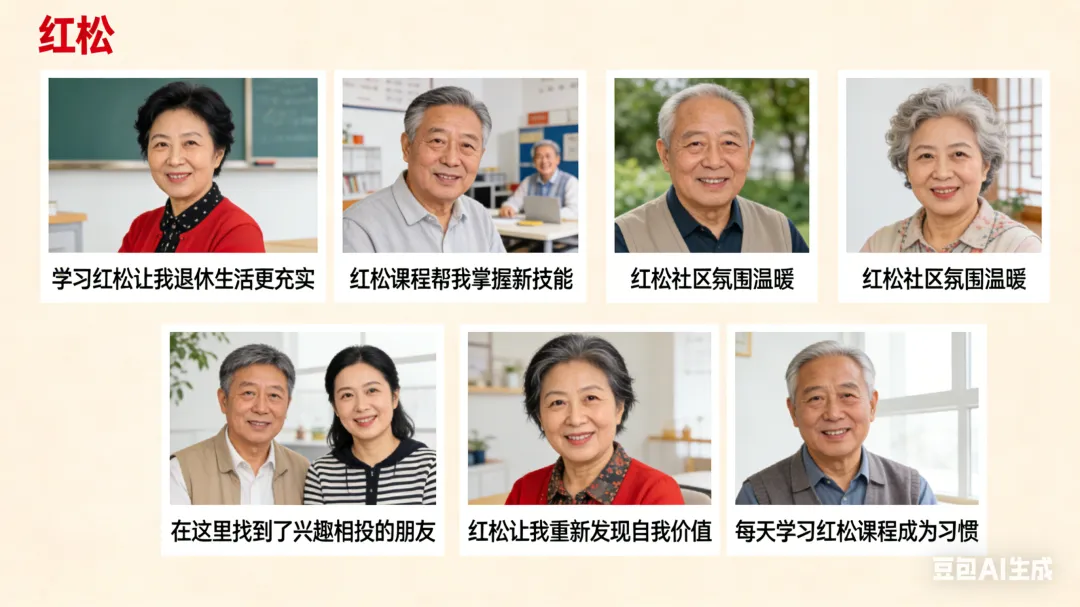 🔑 核心洞察:退休群体不仅有共同的时代经历,也有每个人不同的人生故事,他们其实有很强的表达和分享意愿。红松的价值,就是让这种表达成为可能。