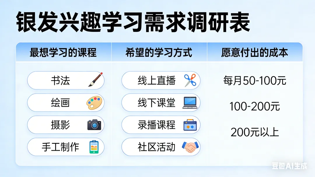 🔑 核心洞察:银发文娱消费正从“被动接收”向“主动创造”转型。谁能降低表达门槛、提供表达空间,谁就能抓住这轮机会。