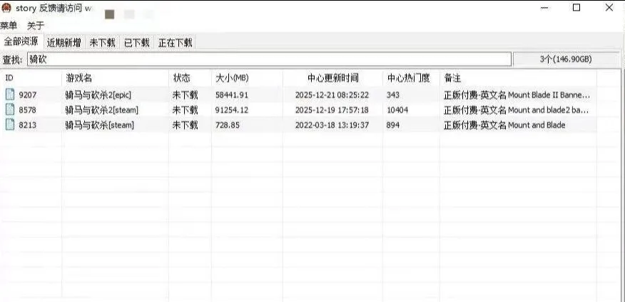 主界面如下,输入要查找的游戏即可进行查找,右键即可进行下载