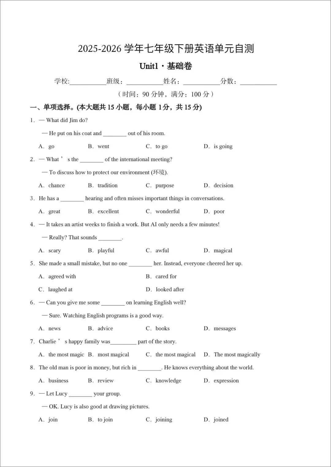 2026春(外研版)七年级下册英语《电子课本+课件PPT+教案+导学案+同步练习+单元测试卷》,电子版可打印!