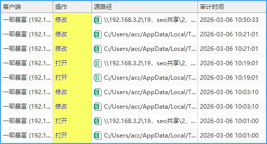 所有Excel文件的操作痕迹都会被详细记录,不管是文件外发、U盘拷贝、编辑修改,还是打开查看,都能查到对应的操作人员、操作时间、操作内容,万一出现泄密问题,能快速溯源追责,方便后续排查处理。