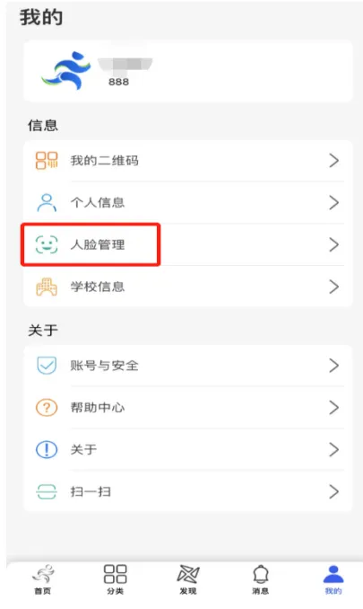 在“我的”,点击“人脸管理”,选择“人脸采集”,根据提示完成操作,直到系统提示“人脸采集成功”,即完成人脸信息采集。