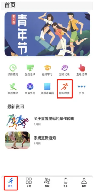 5.1在“阳光跑步”界面,点击“跑步” 图标,按照提示进行人脸认别。