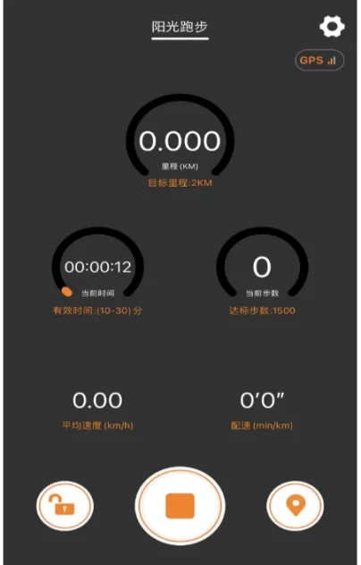 5.3跑步界面可以看到“目标里程”、“当前时间“、“当前步数”按照要求进行跑步。
