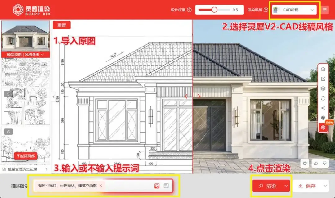 建筑师AI工作流实战手把手教学:SUAPP灵感渲染一键生成CAD线稿