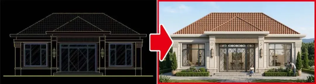 建筑CAD→效果图