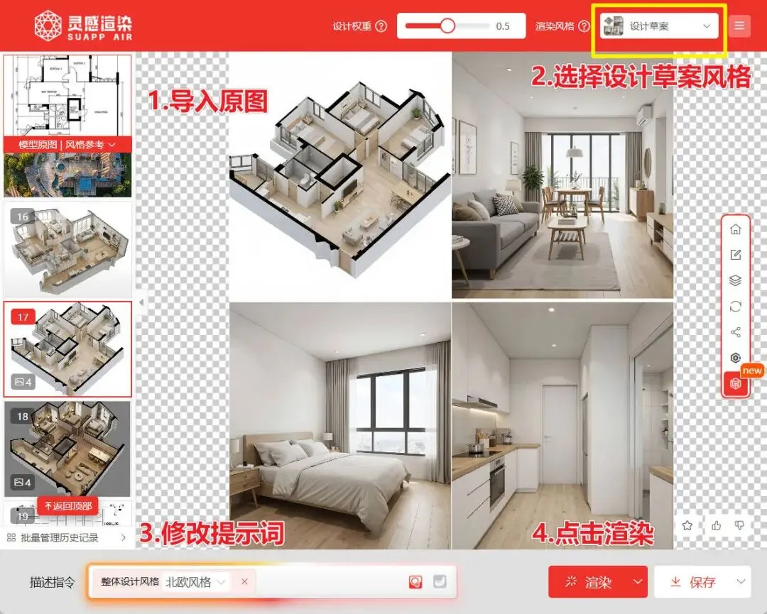 SUAPP灵感渲染(SUAPP AIR),其全称AI Render,是由SUAPP专为设计师开发的AI艺术灵感渲染器,重塑设计可视化生产力标准。它通过简单调节参数,即可快速生成“灵感渲染图”以辅助方案表现,运用到意向图、概念方案图、后期效果图。它绝非传统渲染器,但已经可以完全替代传统渲染器,能够快速提高设计流程效率。灵感渲染全面支持城市、建筑、景观、室内设计以及彩平、手工模型与手绘插画等领域,并凭借高度还原模型材质与控制细节的进化AI能力,无缝融入设计全流程,真正实现从灵感到落地的全程赋能。