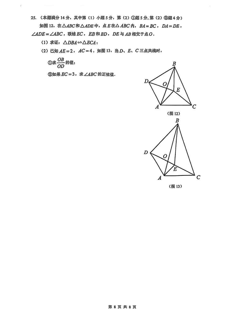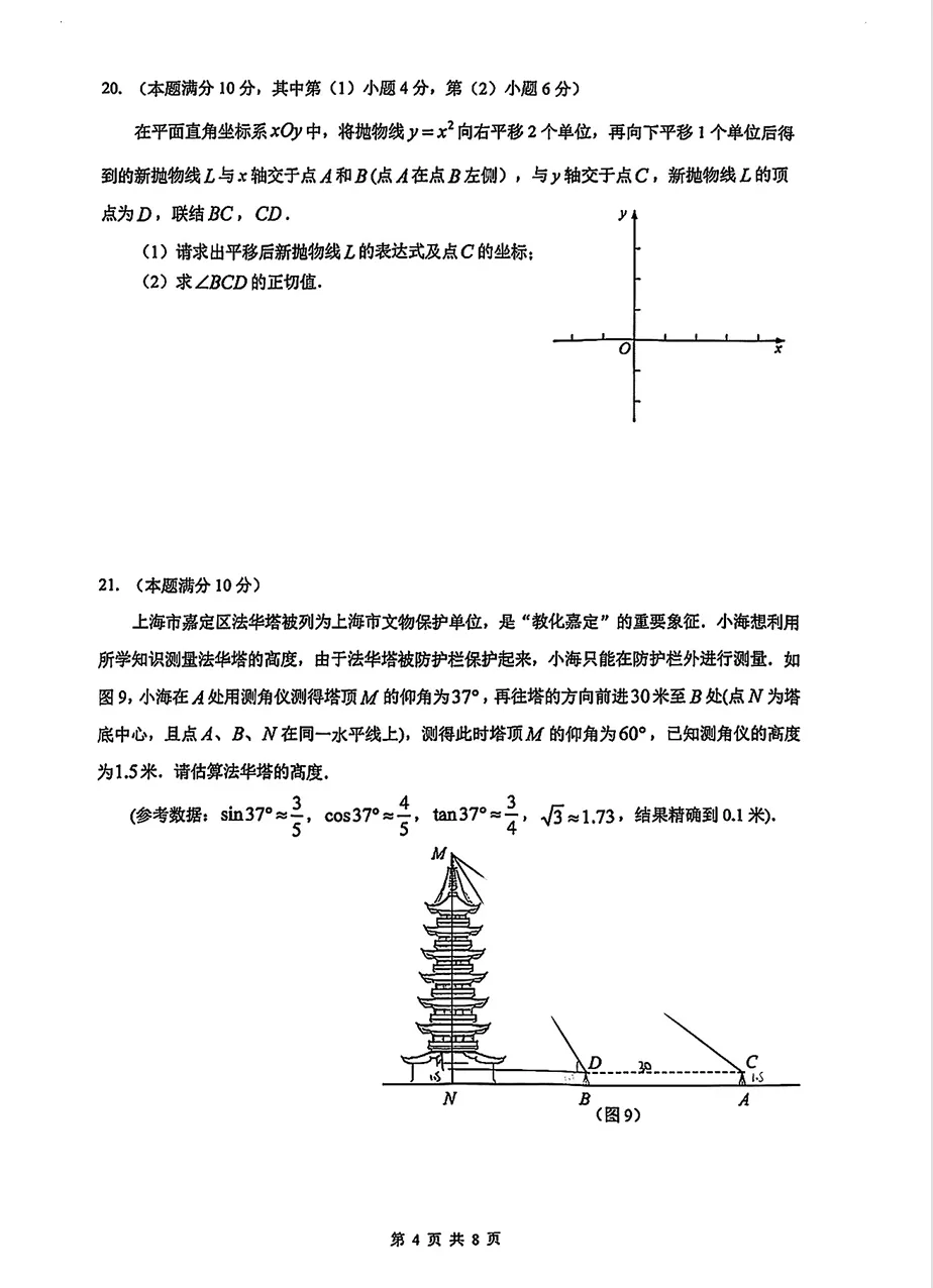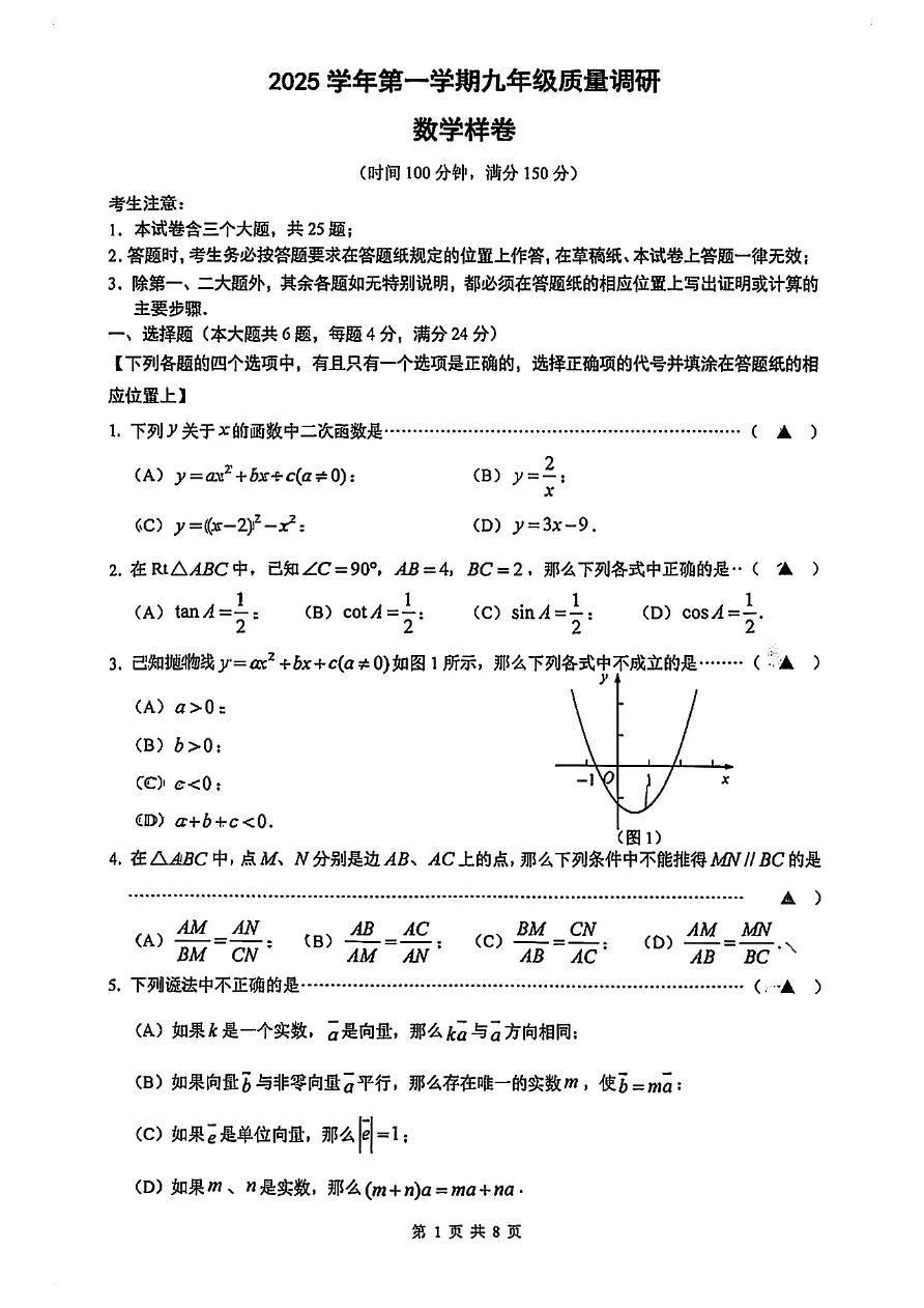 2026 嘉定初三一模数学真题(可打印)