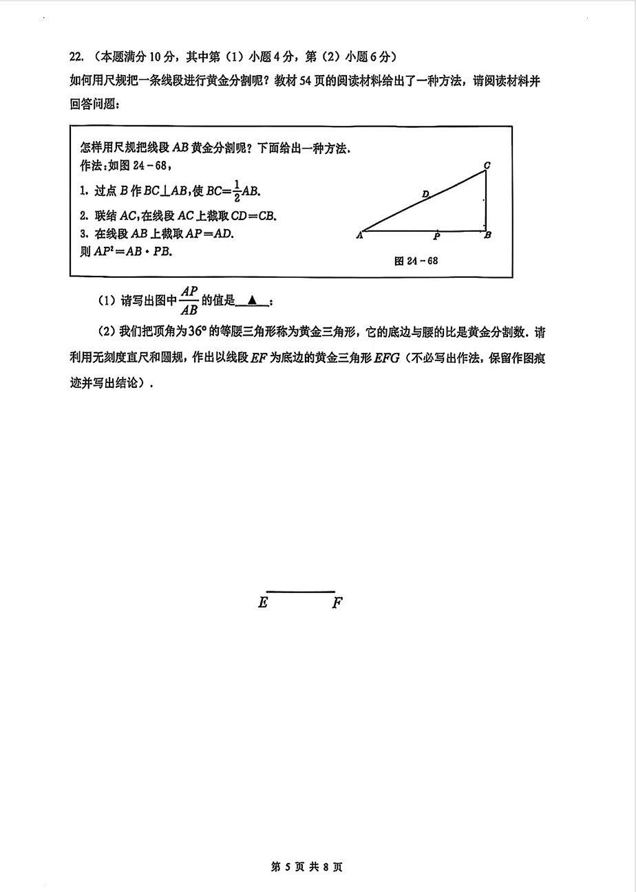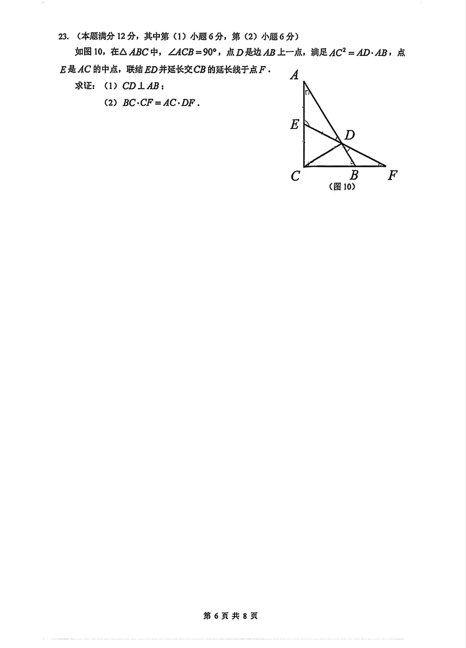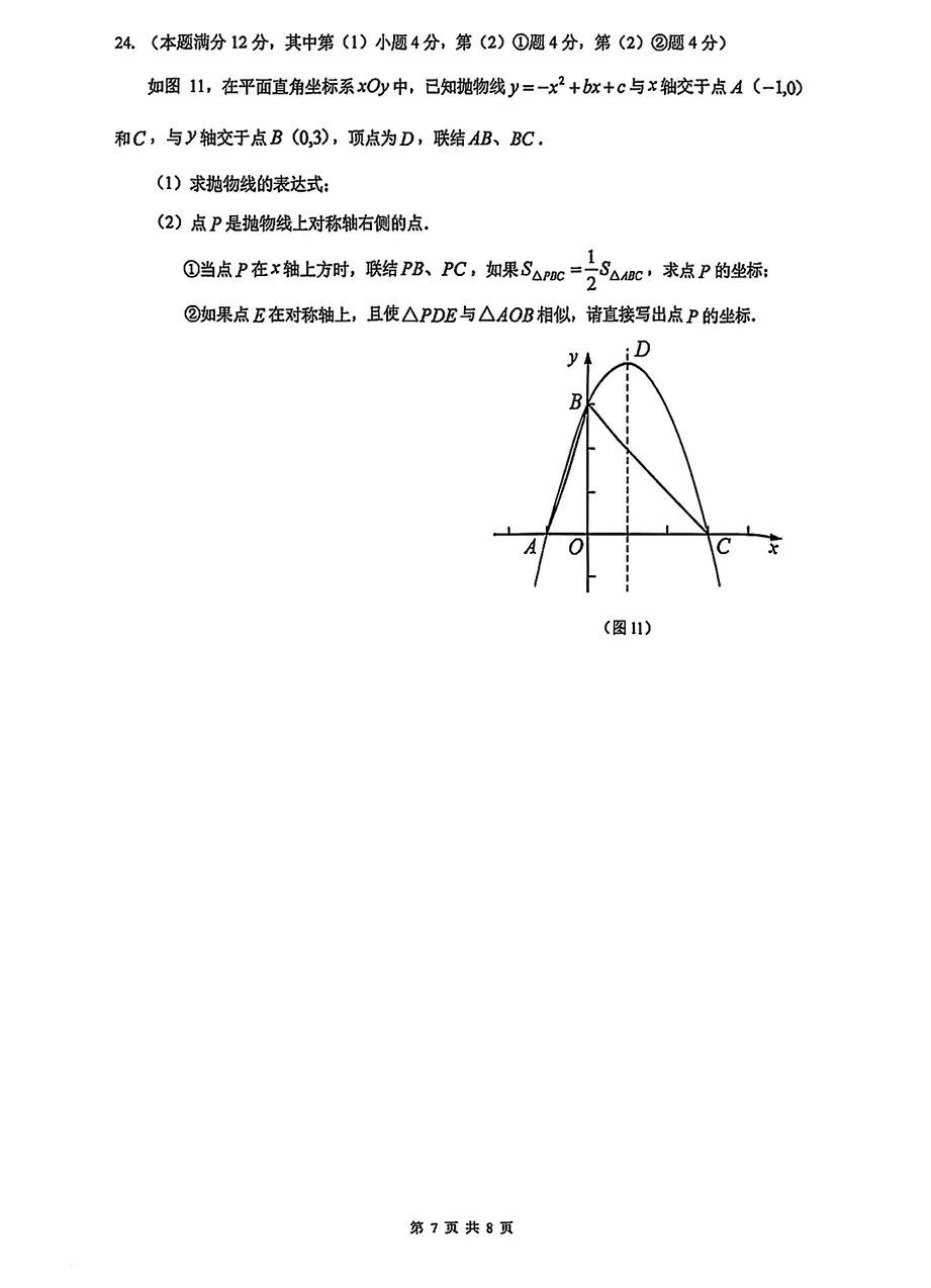 2026 嘉定初三一模数学真题(可打印)