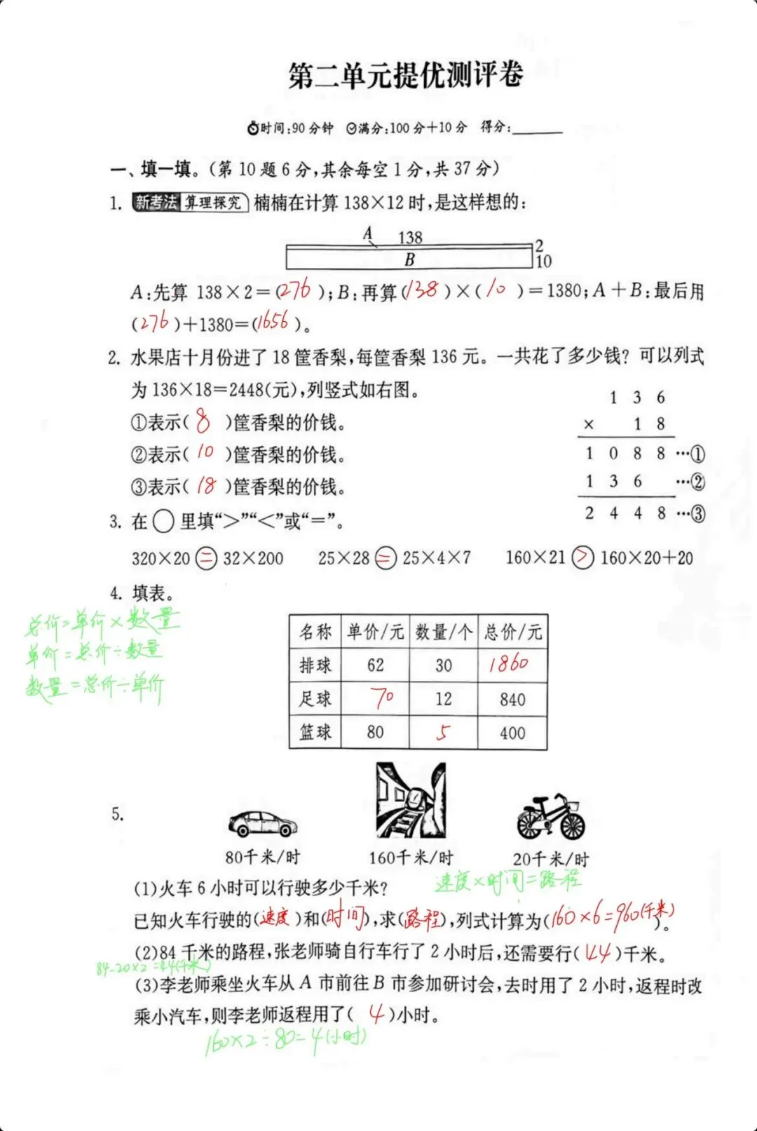 四下第二单元提优测评卷(空白档可打印)