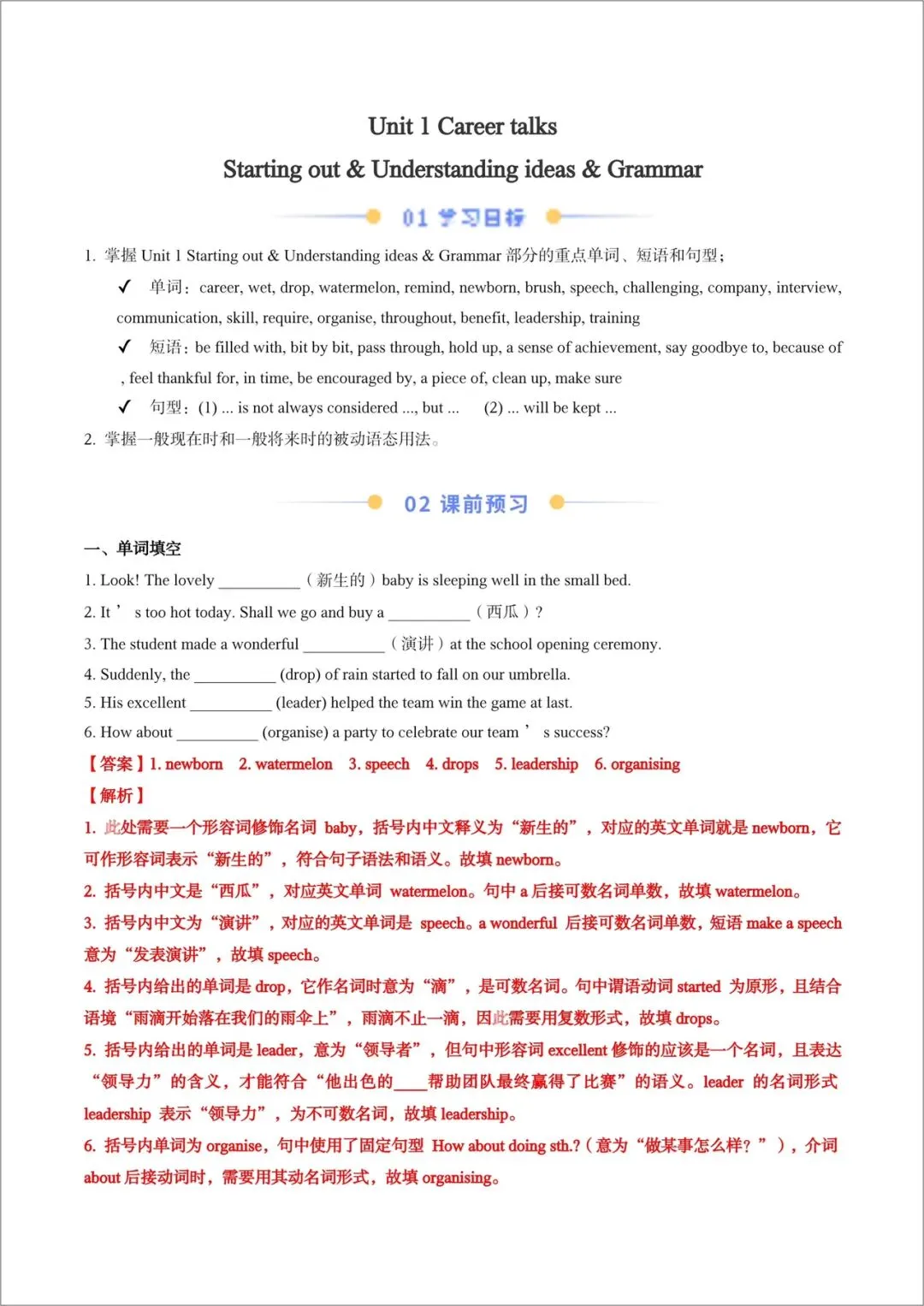 老师精心整理了: