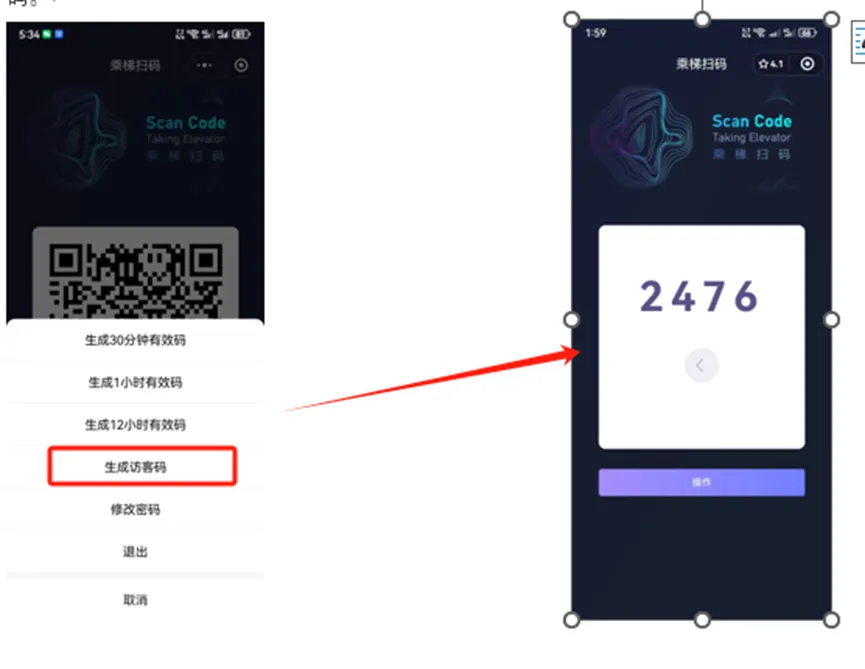 5.下边是电梯里边张贴的访客码图片。请保存打印,张贴到每个电梯里边。