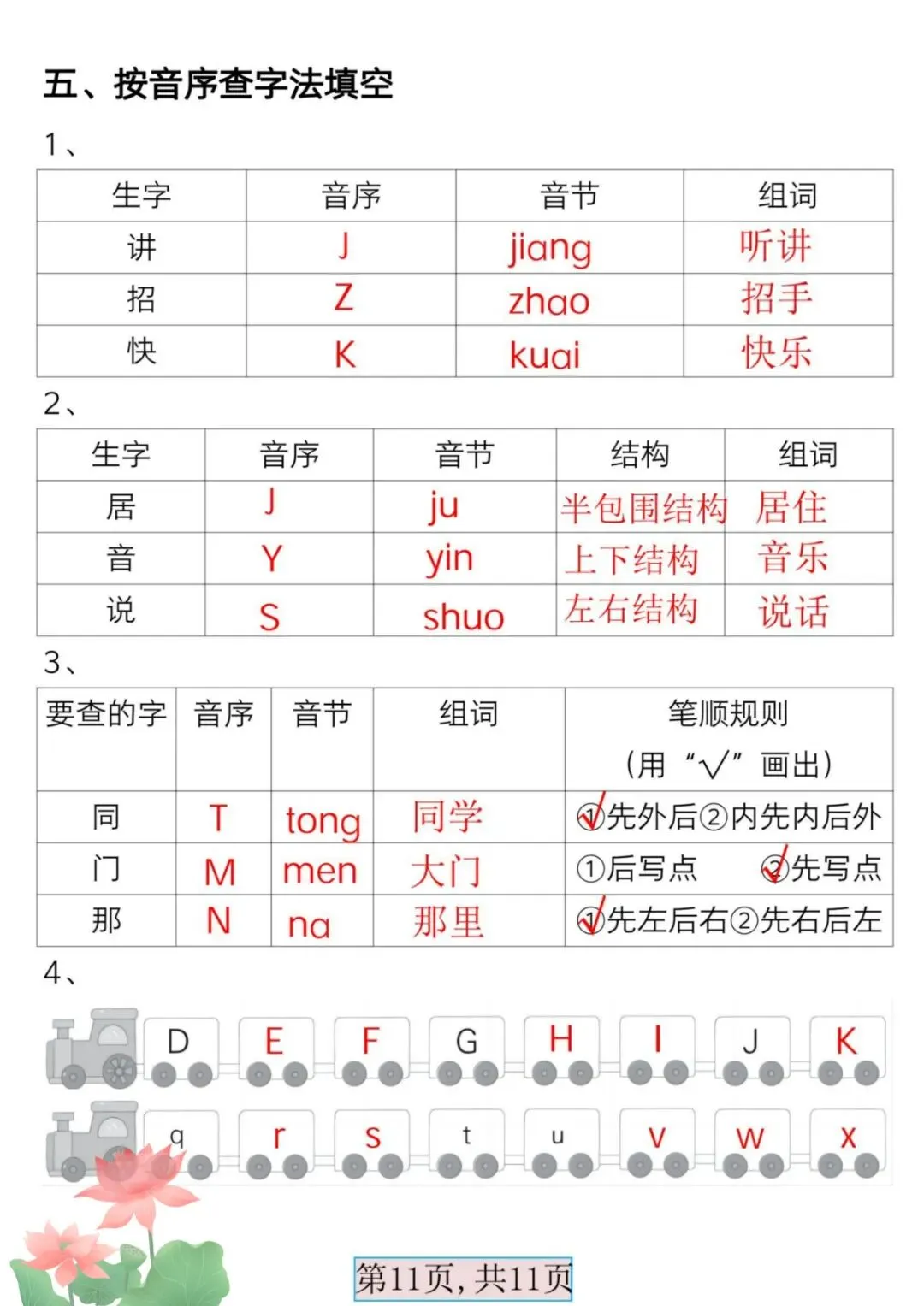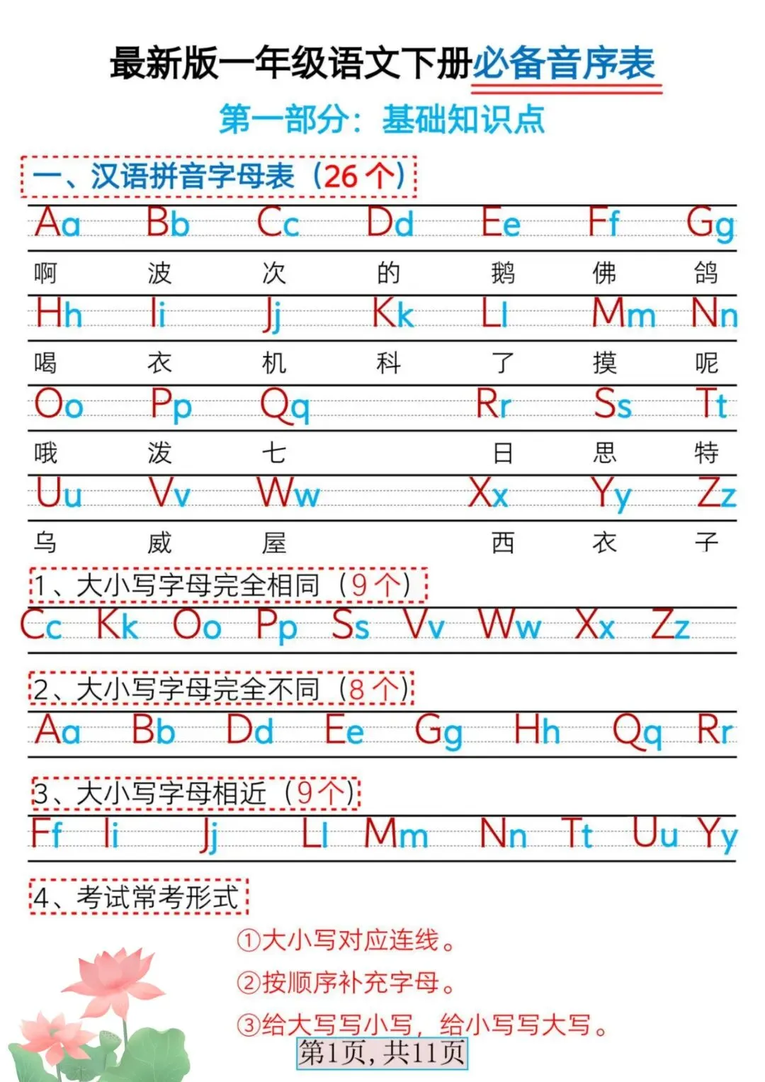 一年级语文下册必备音序表,空白版可打印!